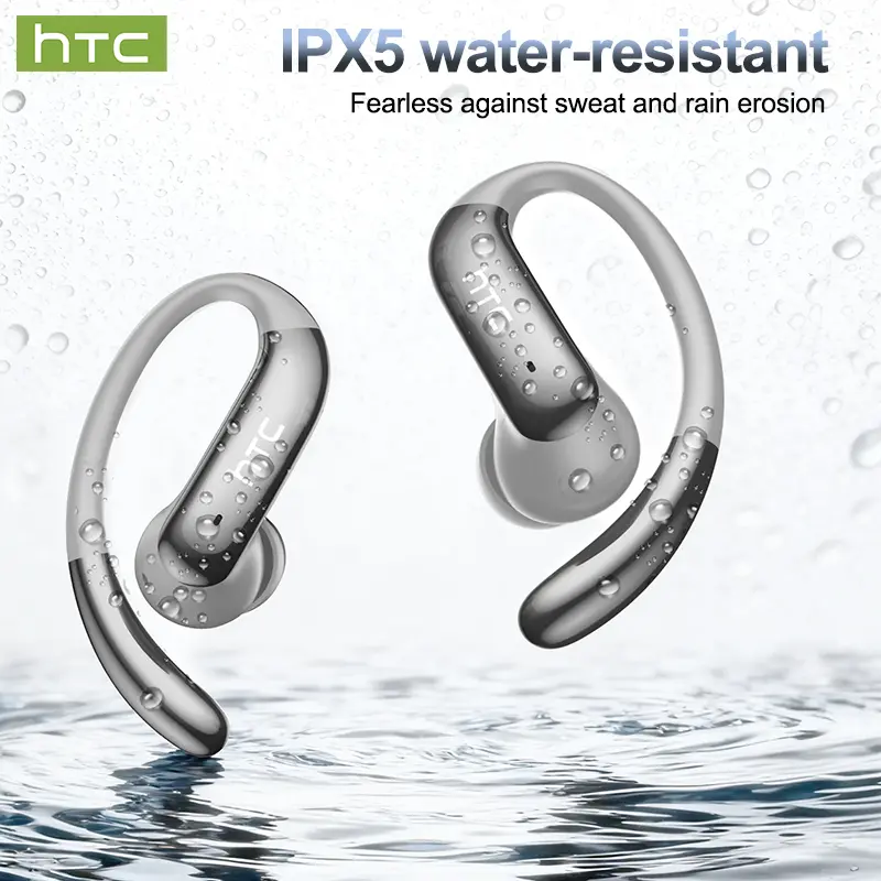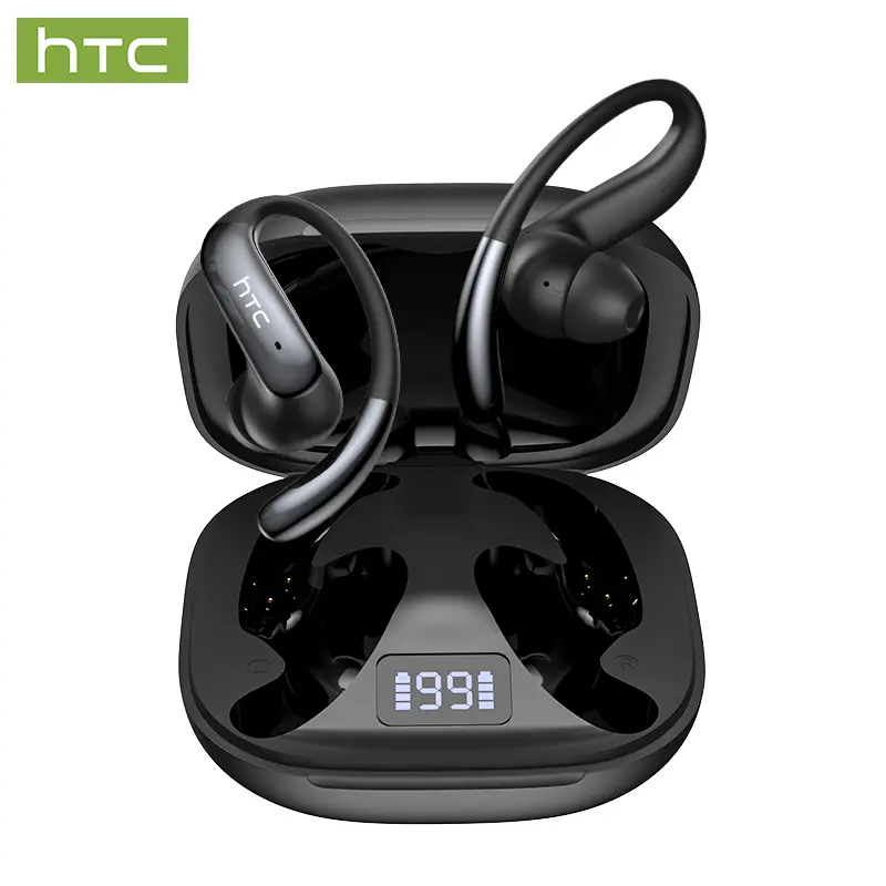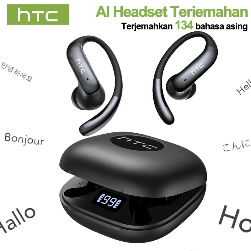 HTC NE63 OWS AI Headset Bluetooth 6.0 Sport Earbuds Layar LED TWS Noise Reduction HiFi Bass Stereo Wireless Gaming Headset dengan AI dan Noise Reduction