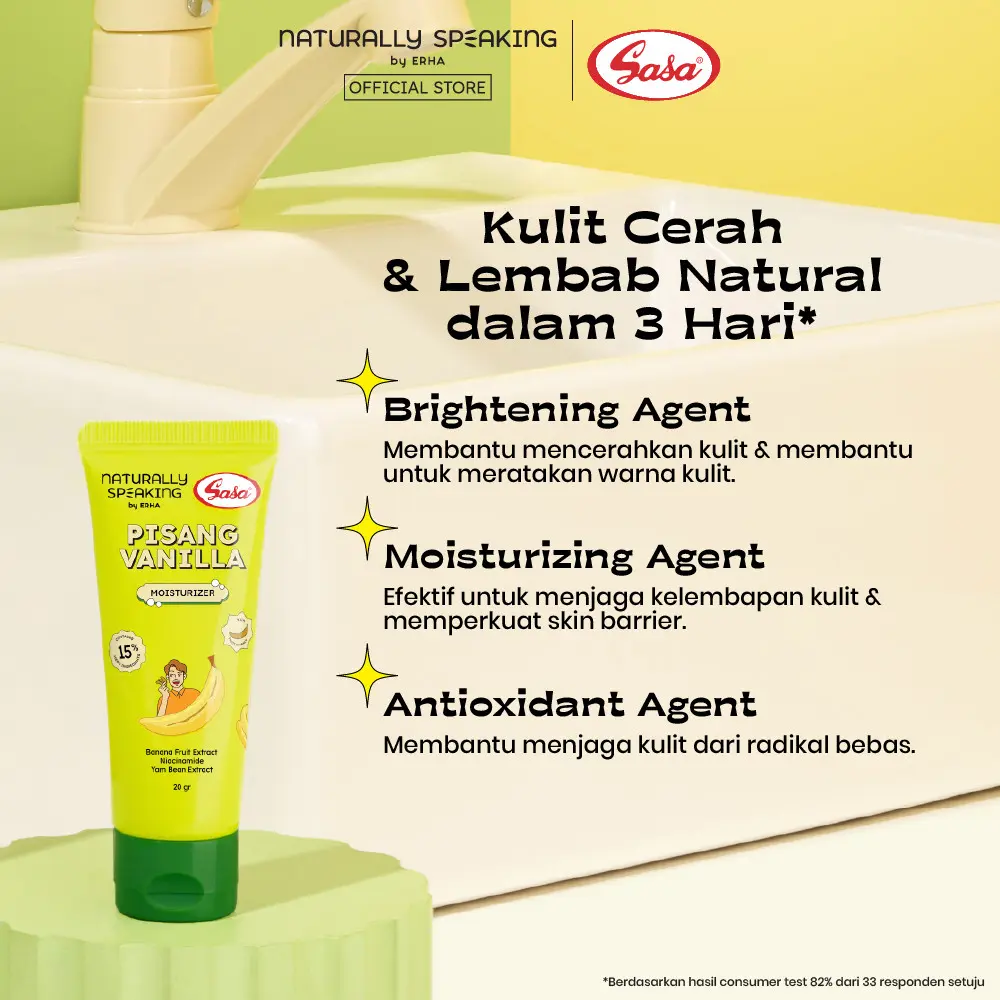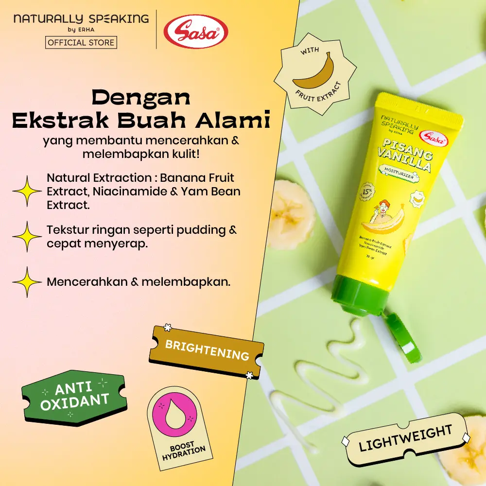 Diformulasikan dengan Banana Fruit Extract, Niacinamide, dan Yam Bean Extract
