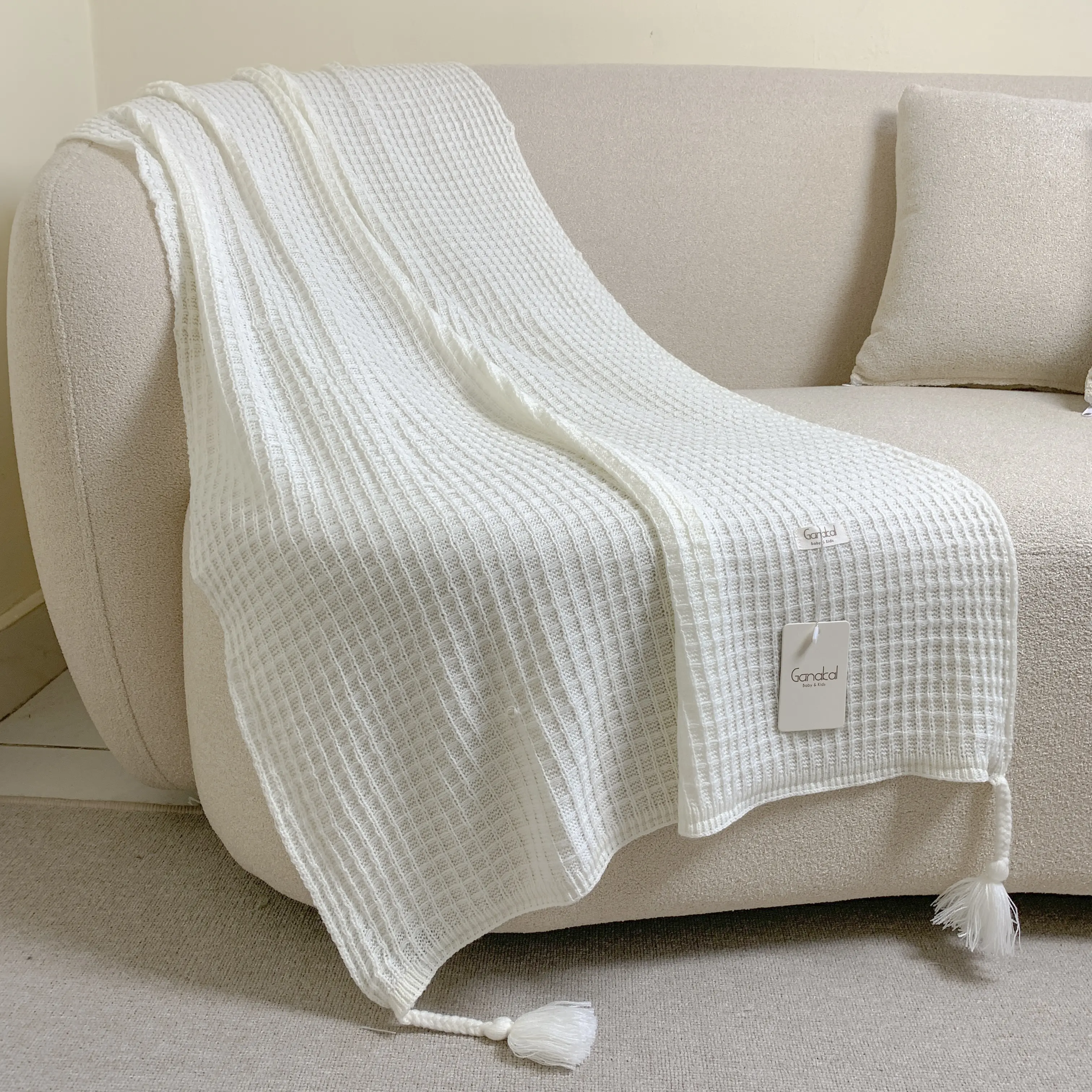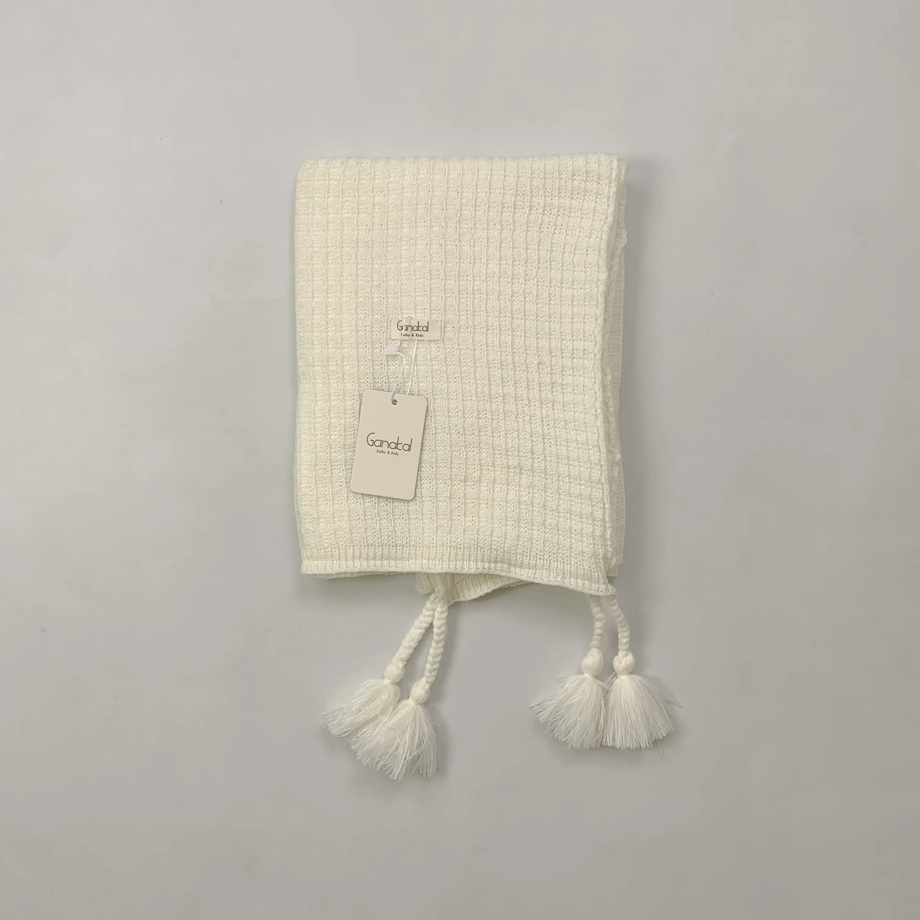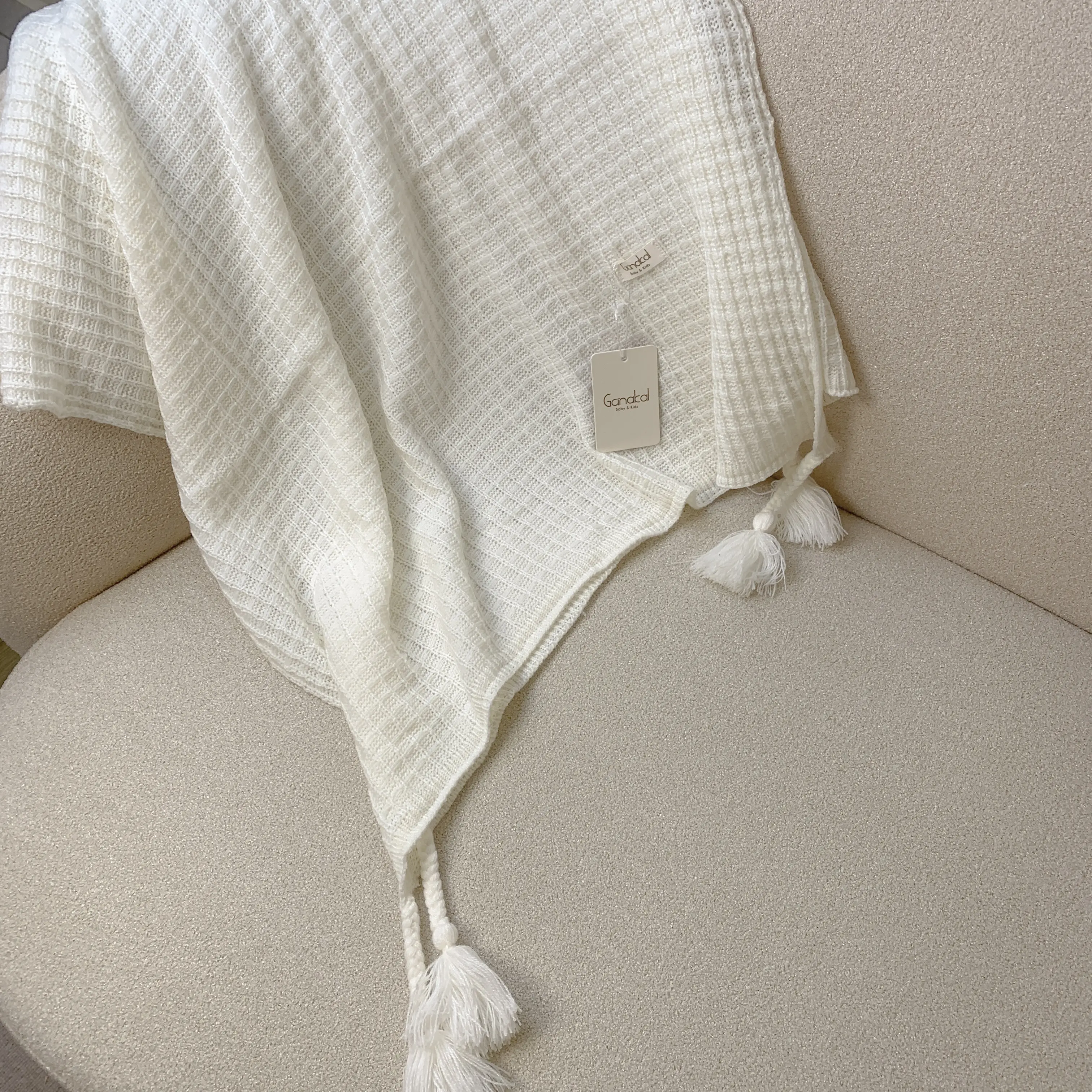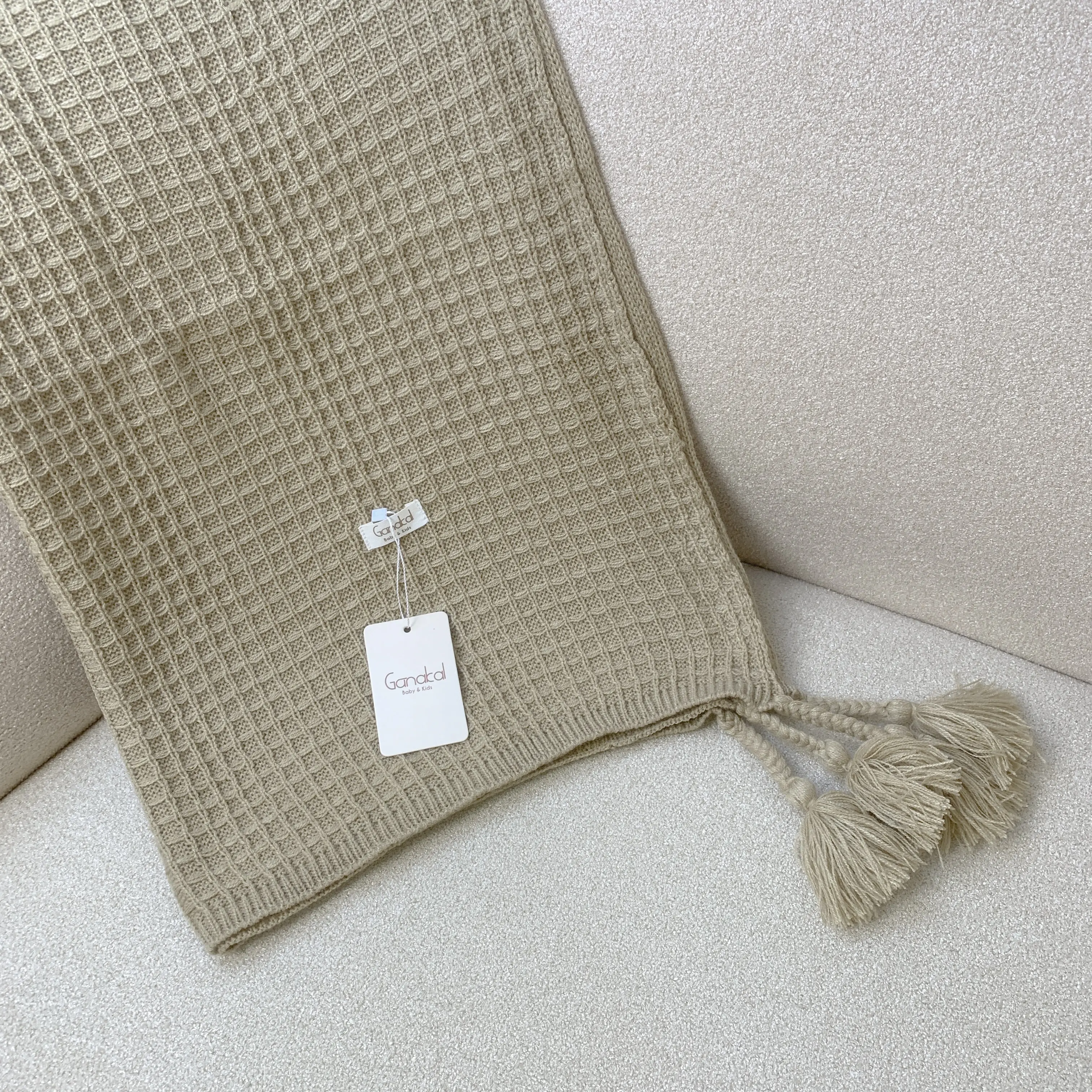 Selimut rajut lembut dengan tekstur klasik dan warna natural khas Ganakal.