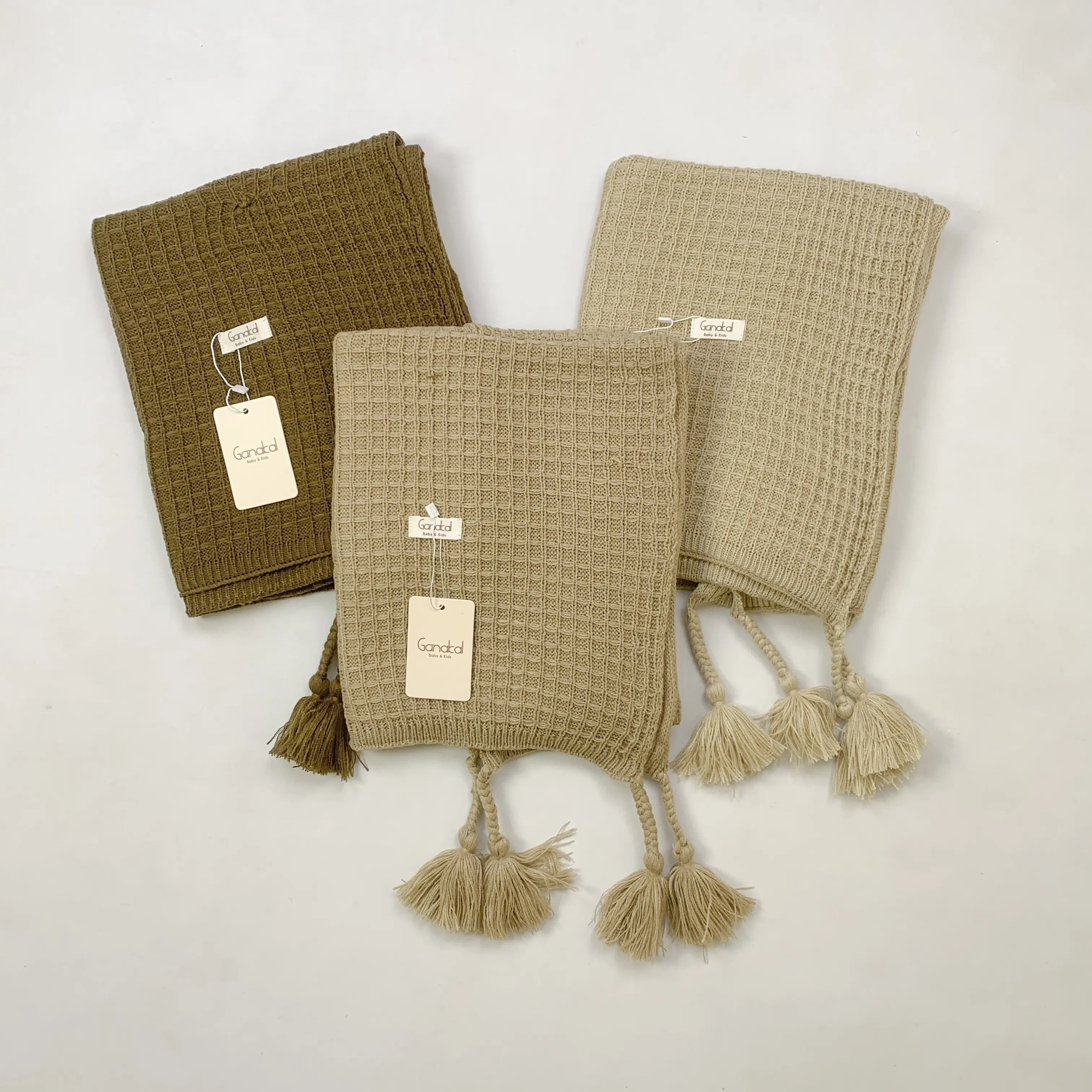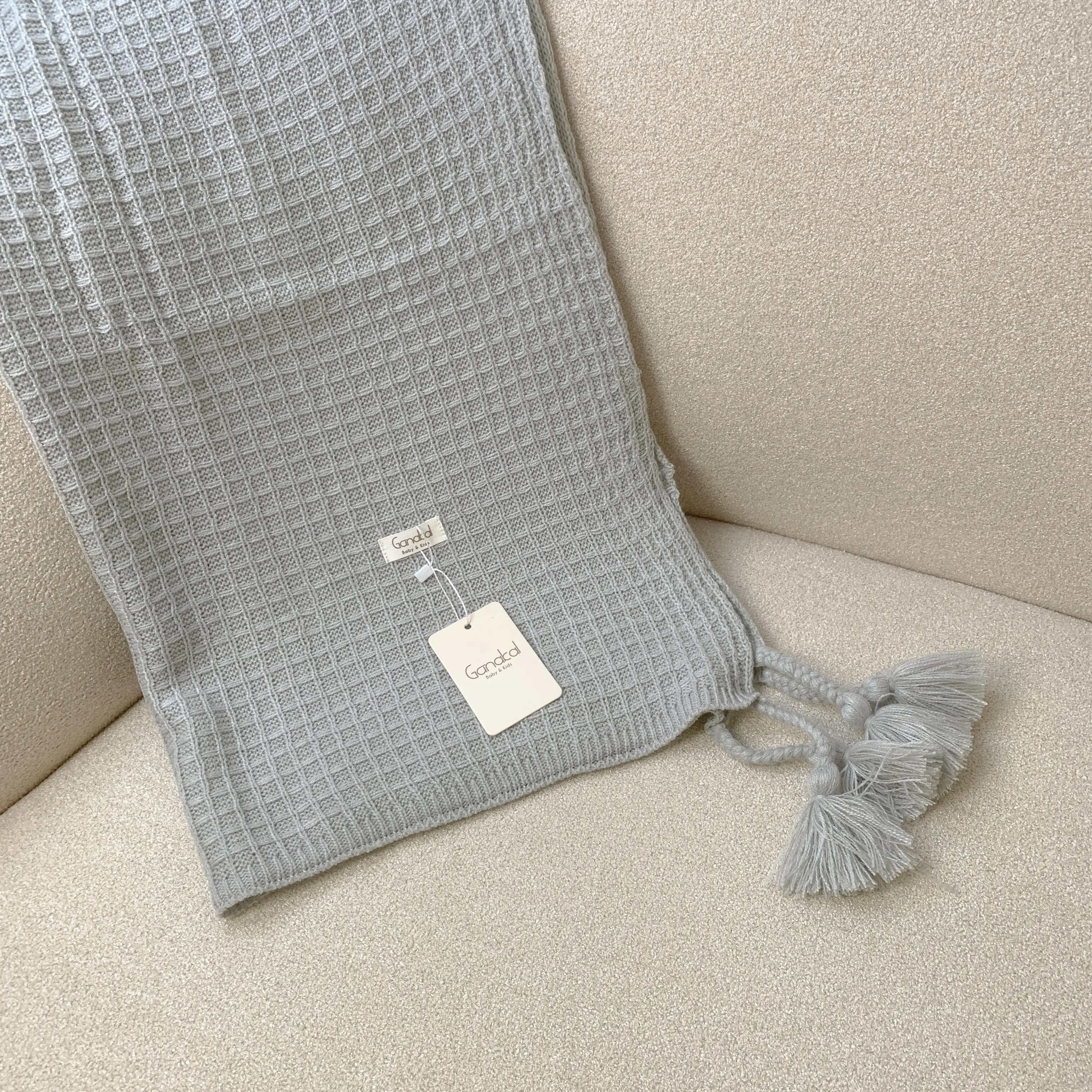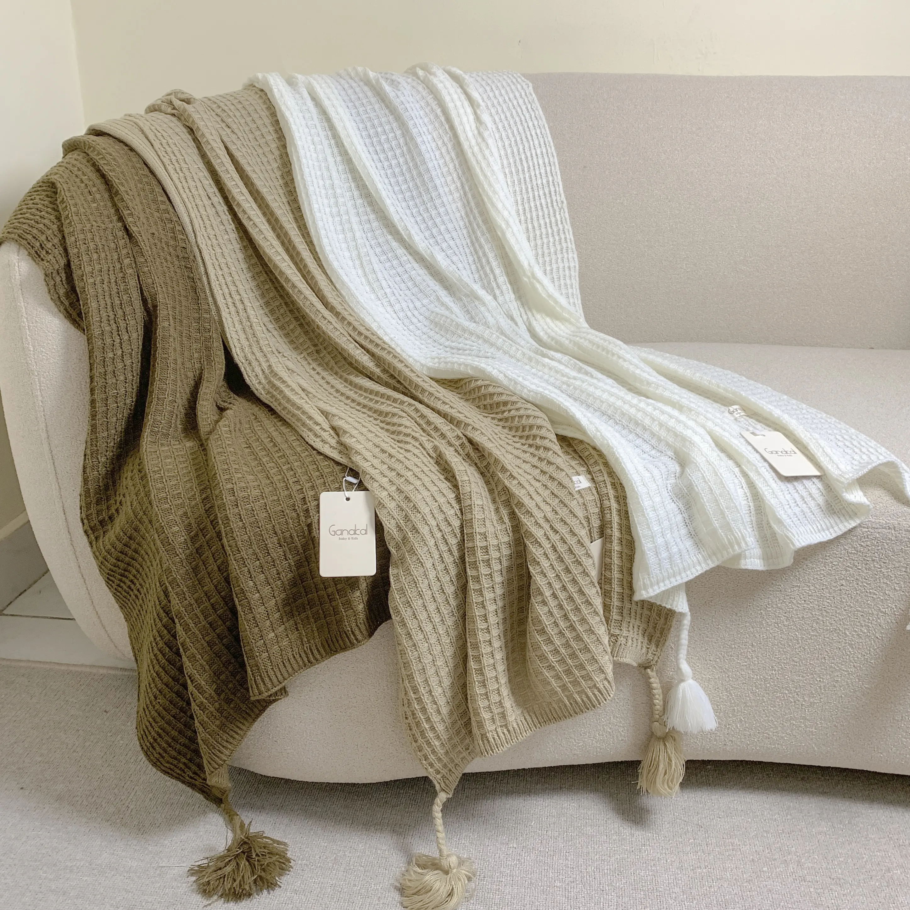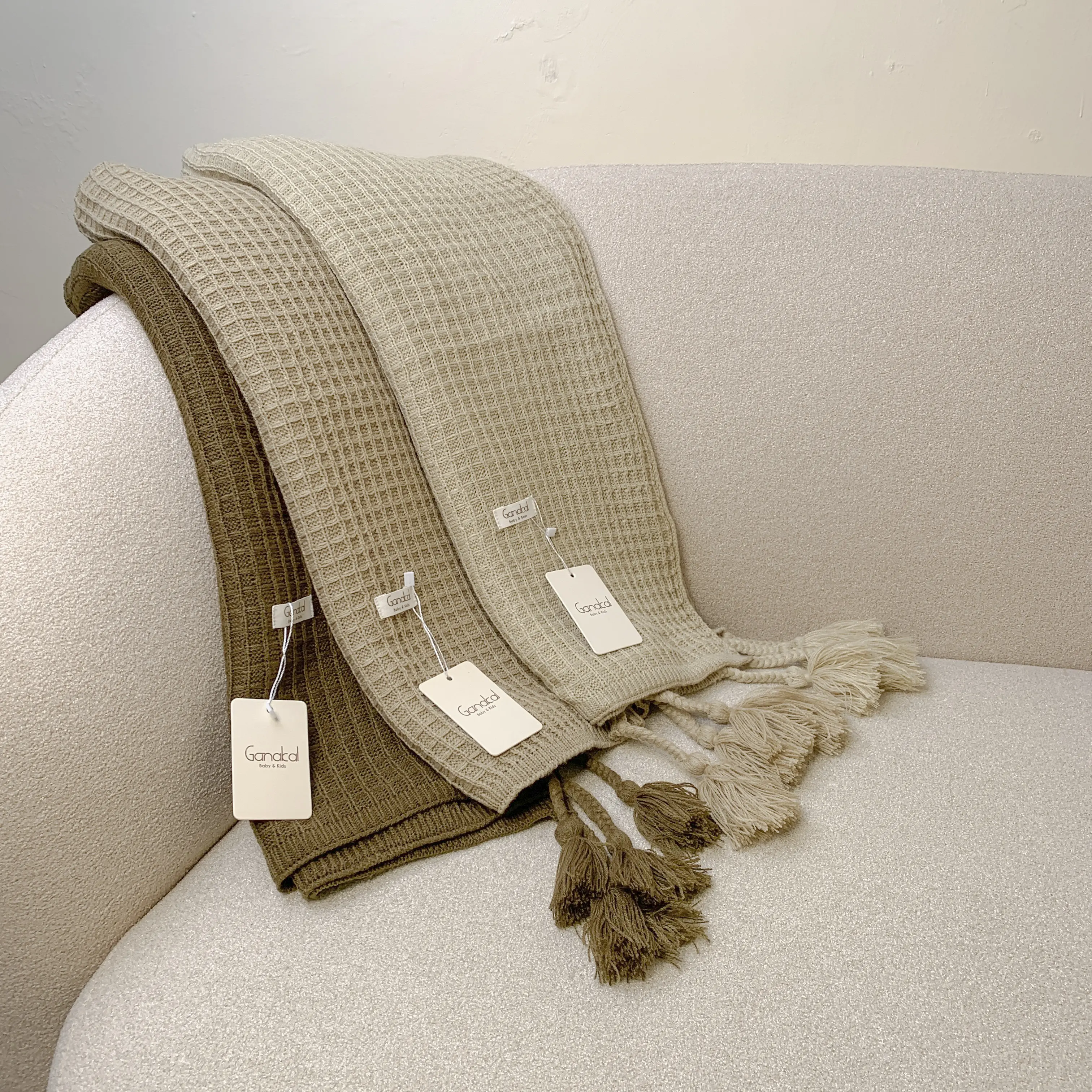 Selimut rajut lembut dengan tekstur klasik dan warna natural khas Ganakal.