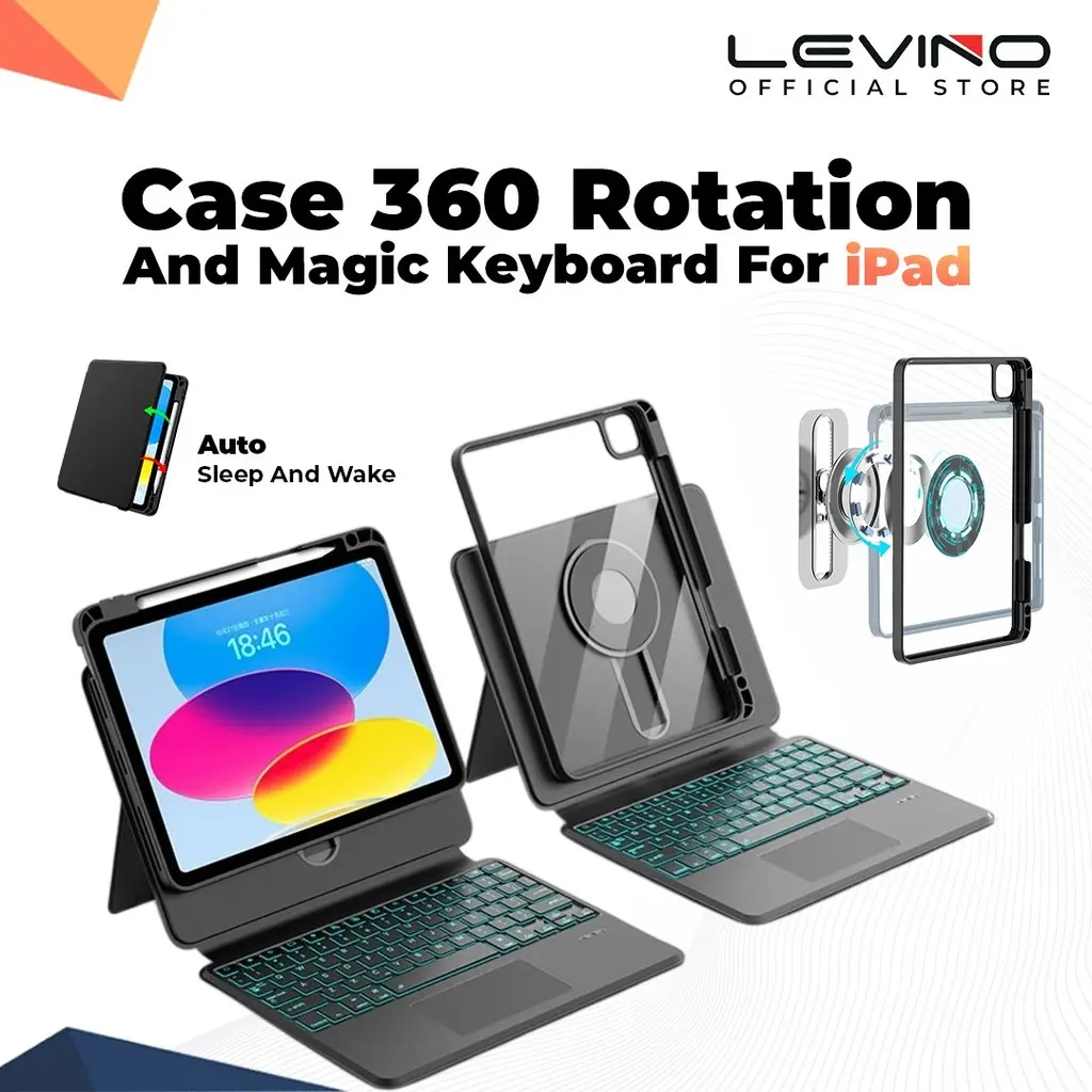 5. LEVINO iPad Magic Keyboard Case 360 Rotation with RGB Touchpad Compatible for Gen 10/11, Air 4/5 10.9", Pro 11" M1/M2 Air11 2024-2026 Detachable Cover