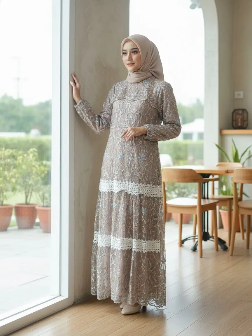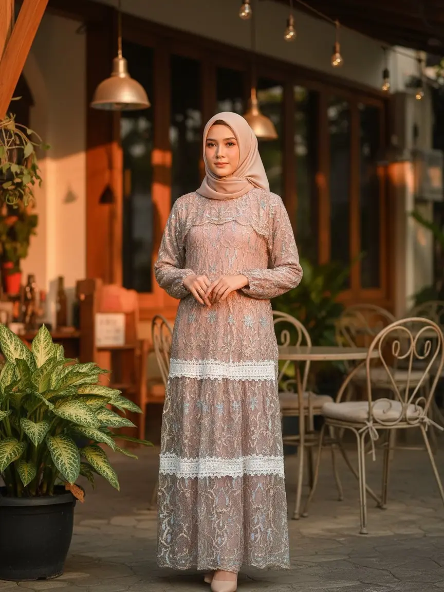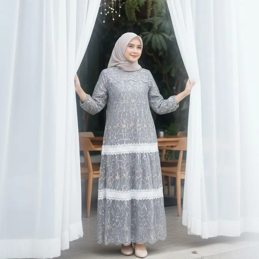 Bahan tile brokat kaca spingle full depan belakang. Dress ini adalah pilihan mewah dan elegan untuk lamaran, kondangan, dan wisuda. Cocok untuk wanita kekinian.
