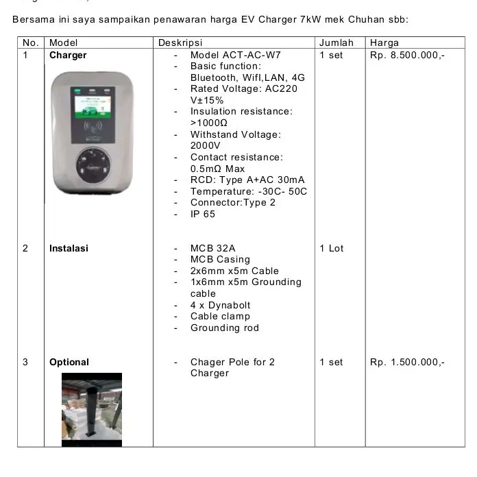 * Jenis: EV.