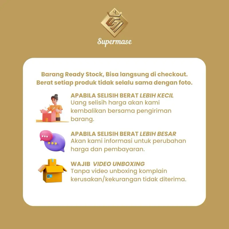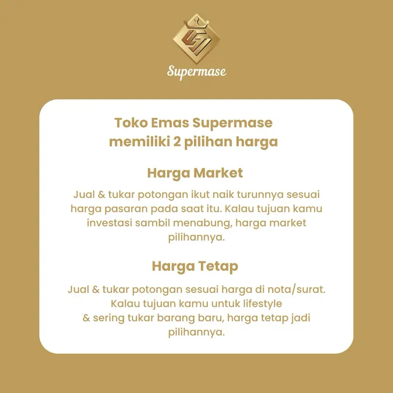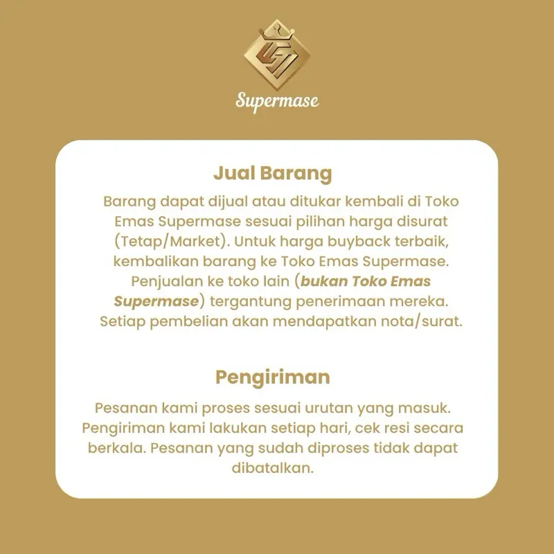 Toko Emas Supermase hanya menjual emas asli 8K 9K 17K 24K dan BERLIAN.