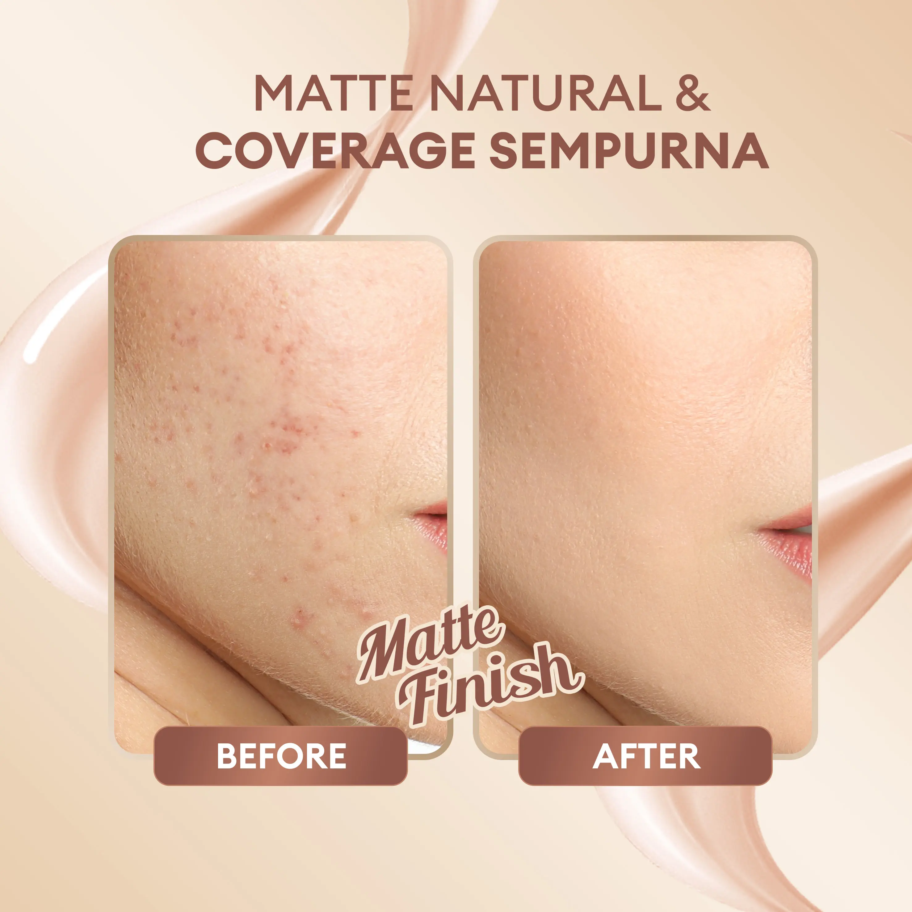Memberikan tampilan matte natural tanpa cakey, tahan lama, dan nyaman dipakai setiap hari.