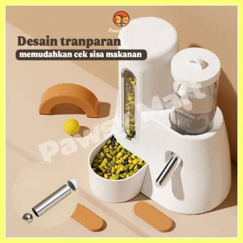 2.Dispenser minum transparan dan indikator level pada tempat makan, memudahkan pengisian ulang.