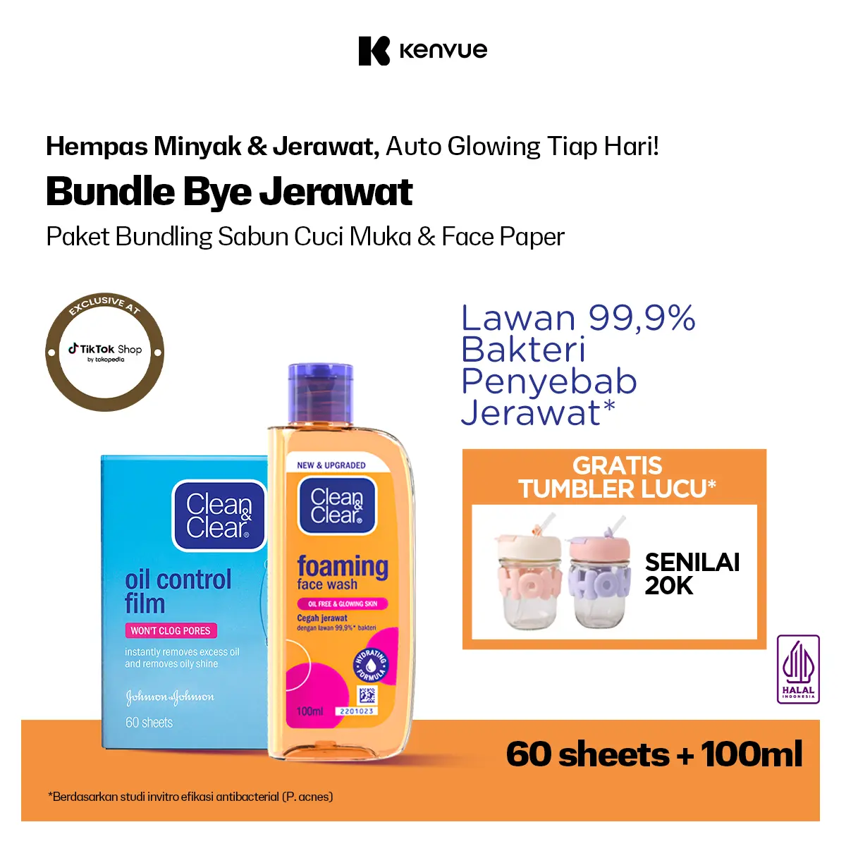 [Bundle Bye Jerawat Free Tumbler] Clean & Clear Foaming Face Wash 100ml & Oil Control Film 60s - Sabun Cuci Muka - Perawatan Wajah-facial Cleanser