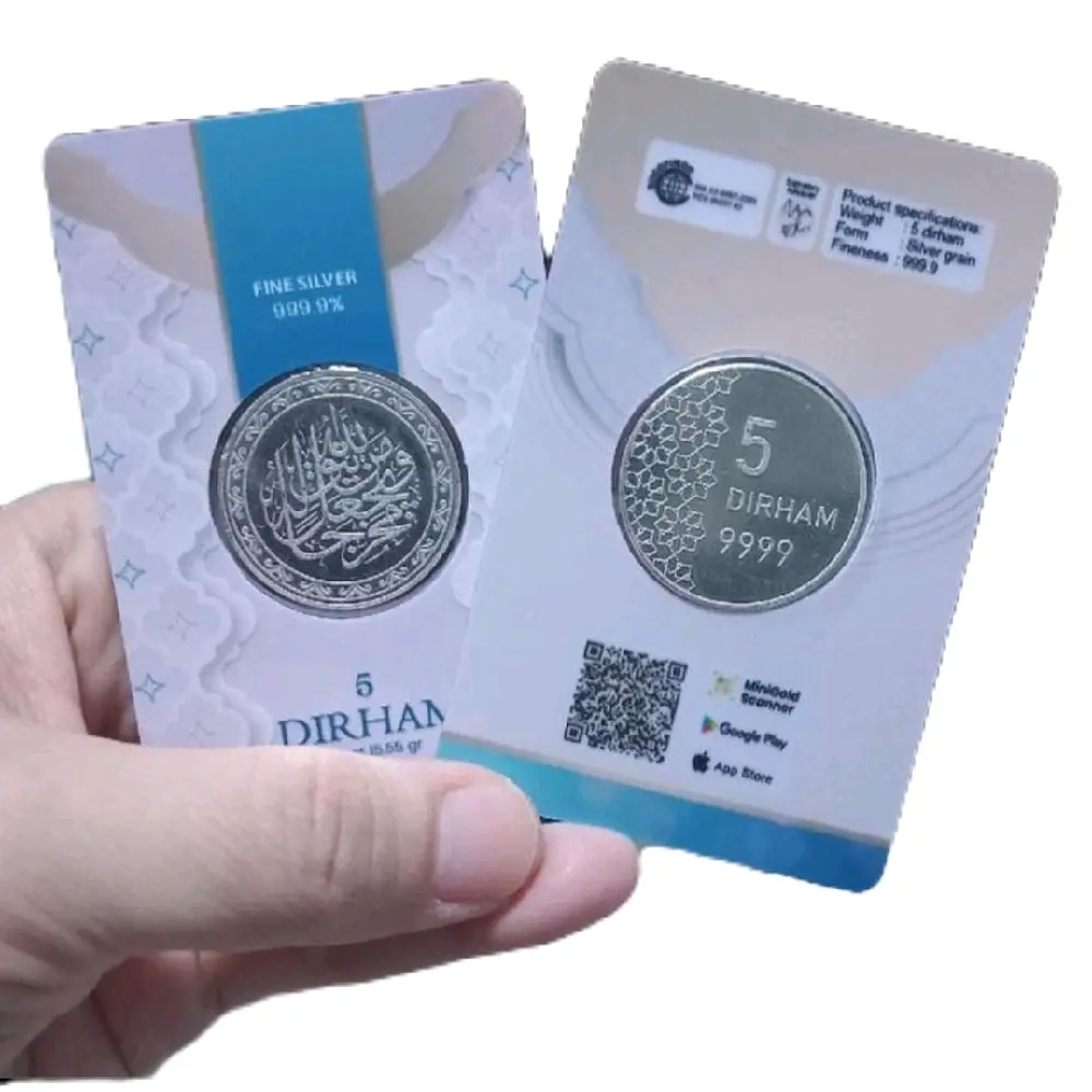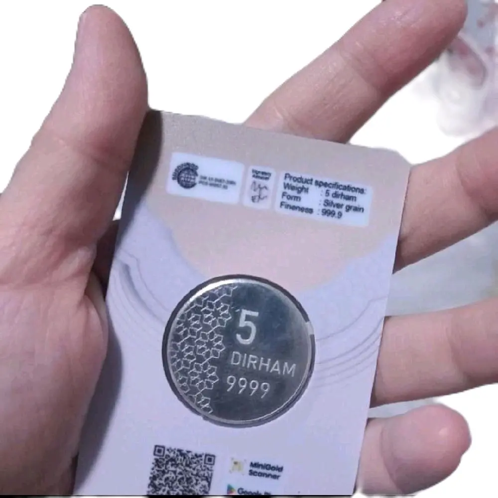 Perak murni ini hadir dalam jumlah 5 dirham. Beratnya sekitar 15,55 gram. Cocok untuk koleksi atau keperluan lainnya. ๐Ÿบ
