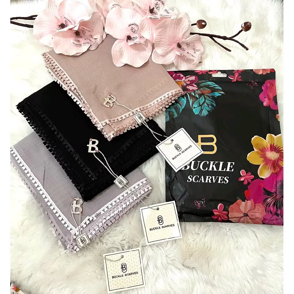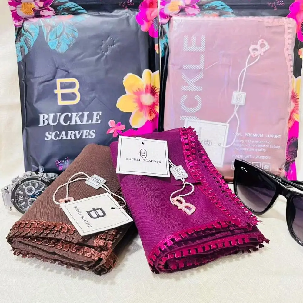 Hijab segi empat dengan desain pinggiran hijab yang sudah di lasercut love bikin hijab BUCKLE SCARVES VINTAGE ini menjadi lebih unik dan lebih cantik.