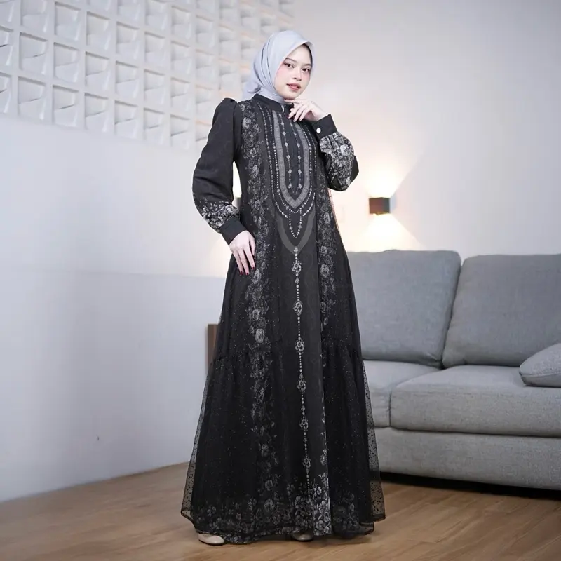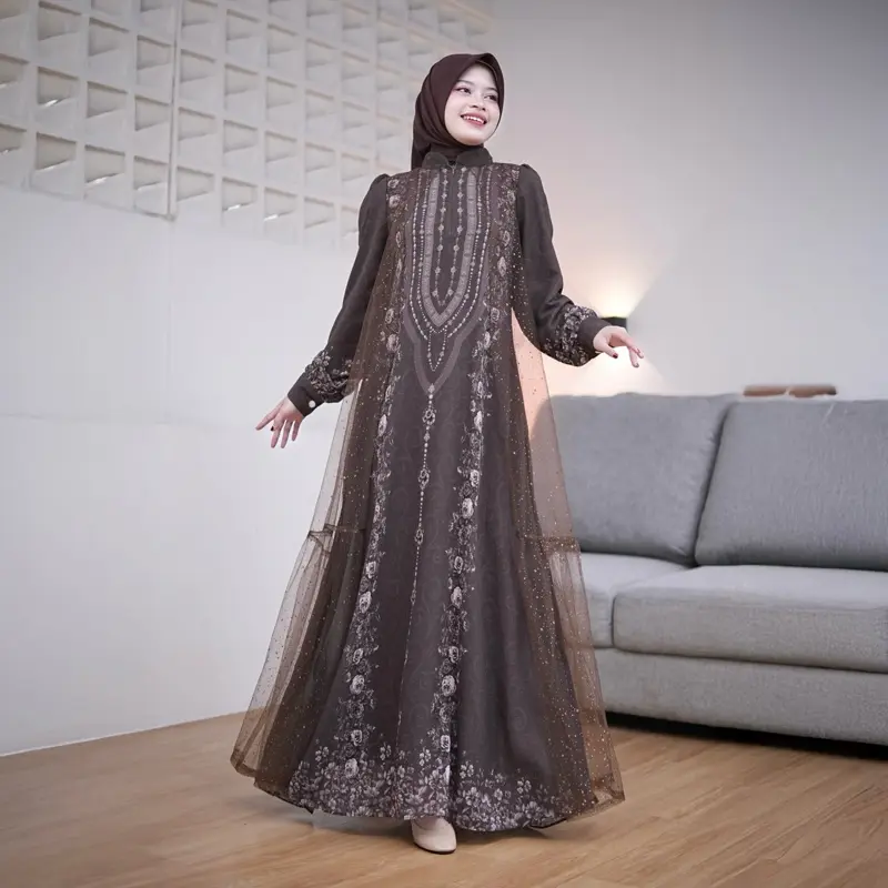 Dress Muslimah terbaru dari FHM LUXURY Terbuat dari bahan Katun Mesir Printing Exclusive dengan tile cantik. Pilihan tepat untuk tampil mewah dan elegan.