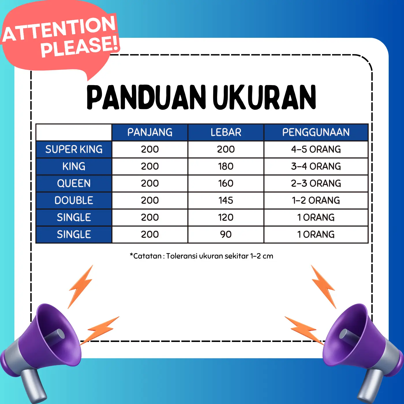 ·200 x 180: Ukuran standar untuk kenyamanan maksimal.