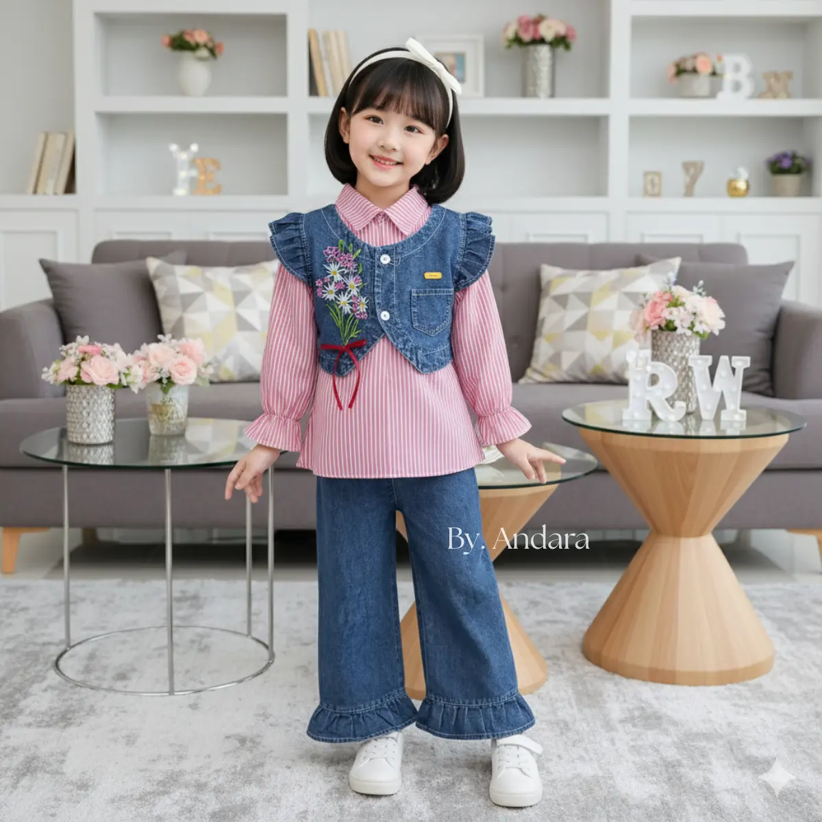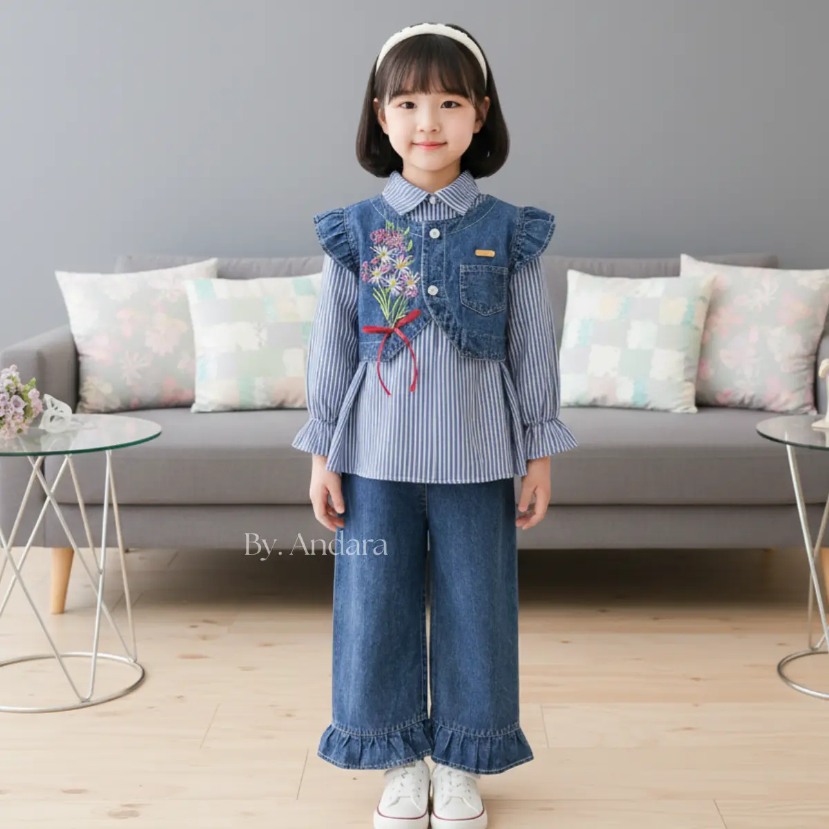 Ā·Bahan Jeans: Nyaman dan cocok untuk anak perempuan.