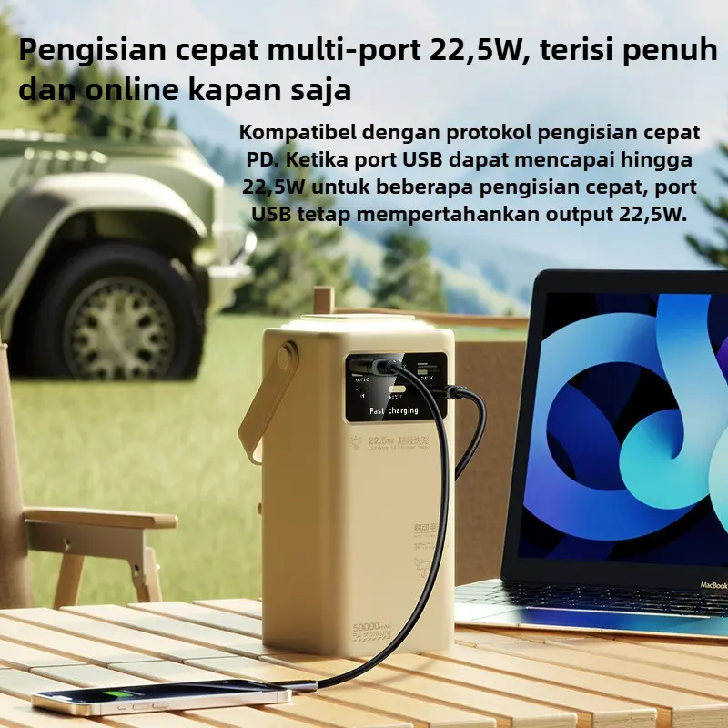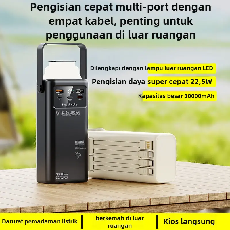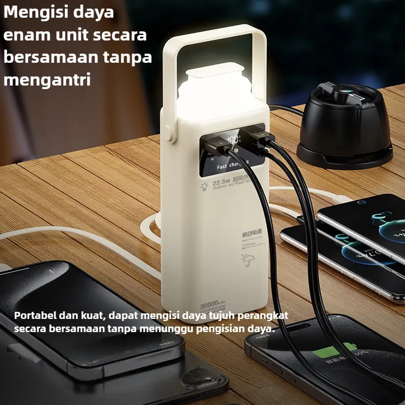 Bank daya mini 30000mAh dilengkapi dengan 4 kabel, termasuk 3 output dan 1 input USB. Ini berarti Anda dapat mengisi daya beberapa perangkat secara bersamaan, cocok untuk orang yang sedang bepergian.