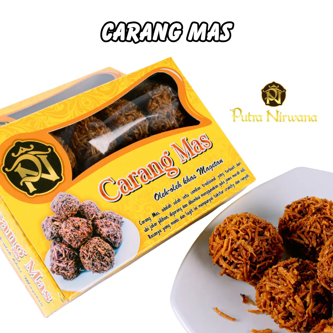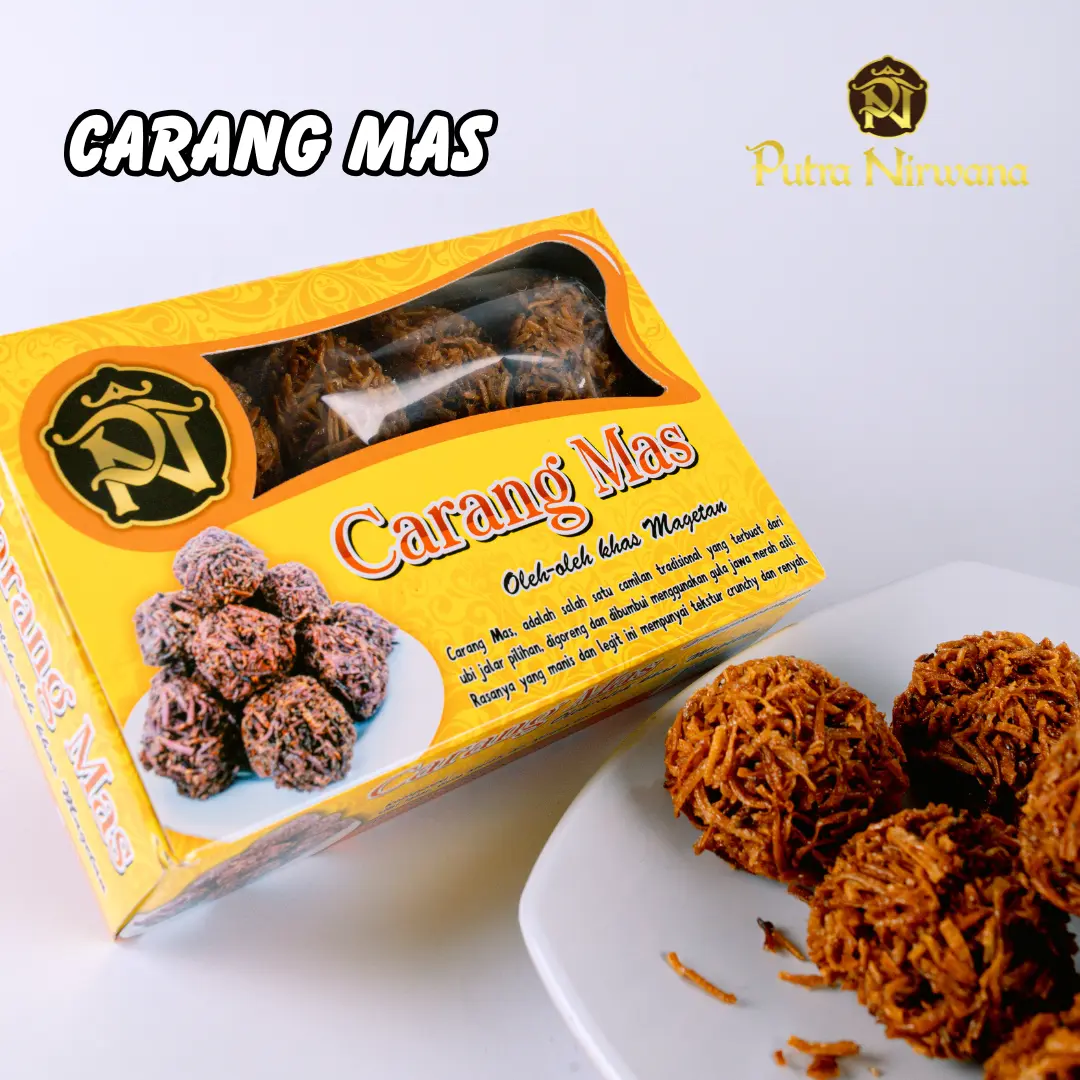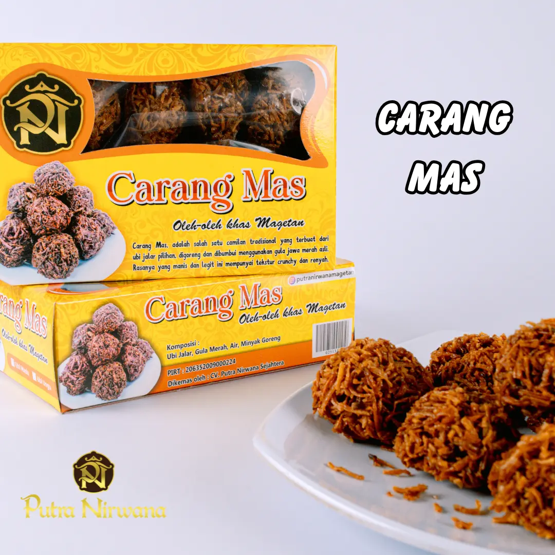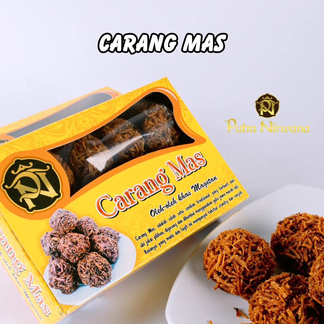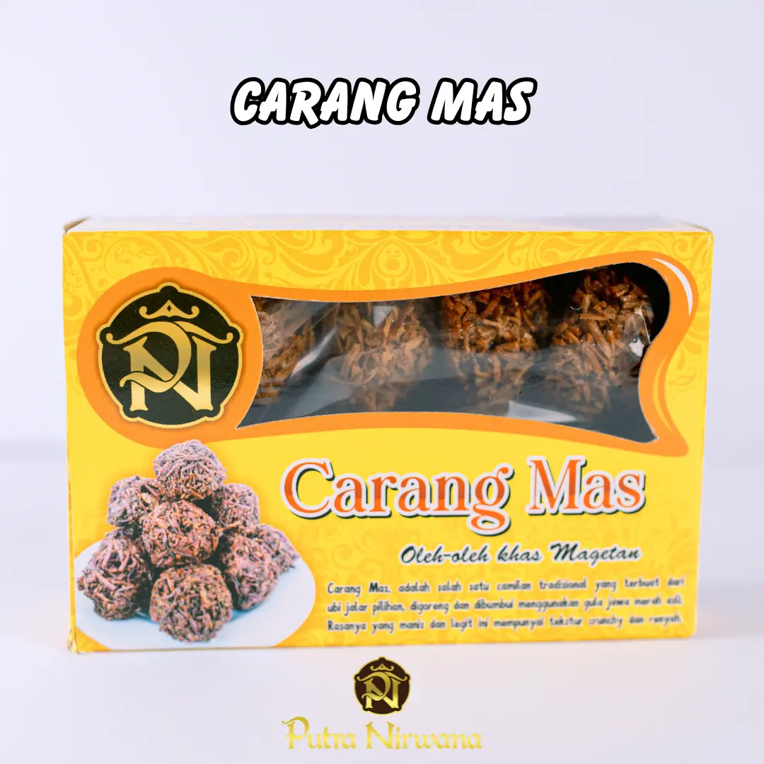 ⨠Carang Mas adalah oleh-oleh khas Sarangan yang terbuat dari ubi jalar. Camilan tradisional ini dipilih untuk direndam, digoreng, dan disiram bumbu Jawa merah asli. Rasanya manis dan legit, membuatnya menjadi pilihan yang tepat untuk camilan. š