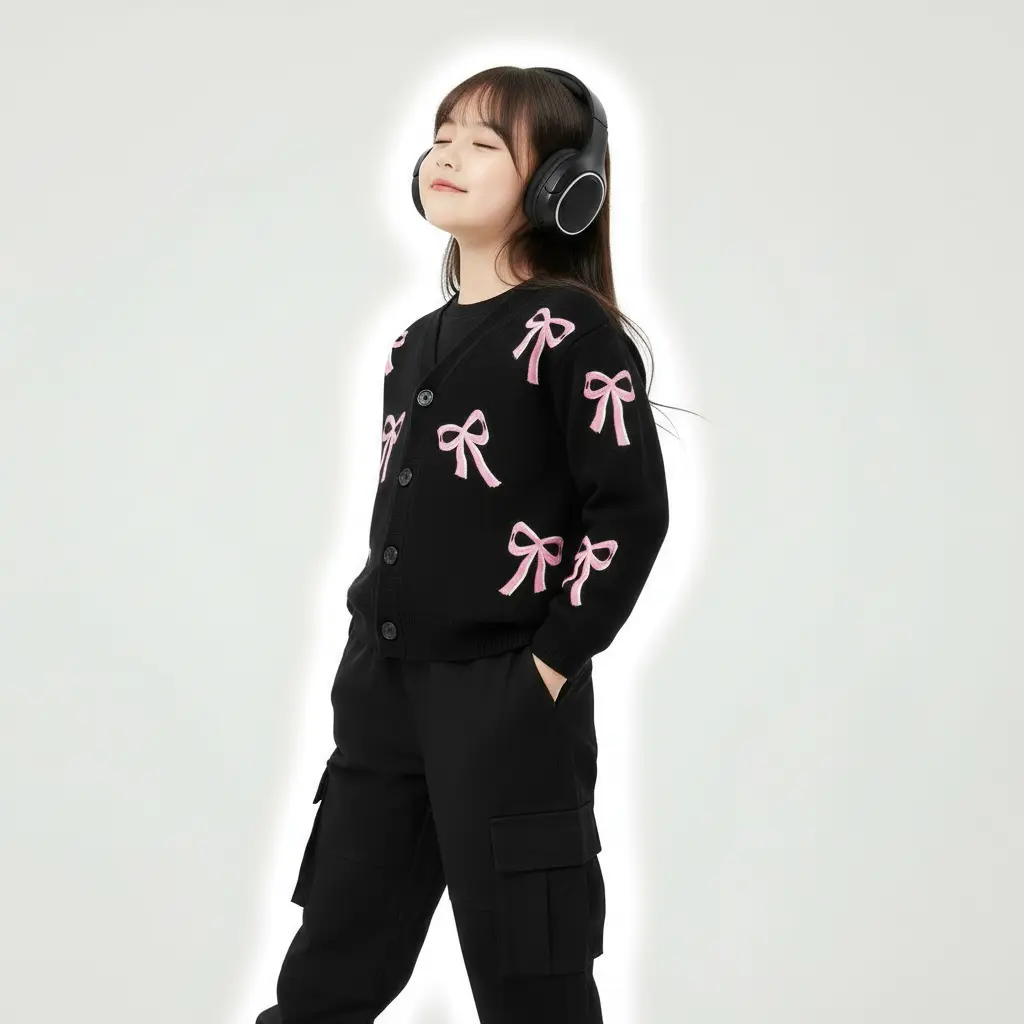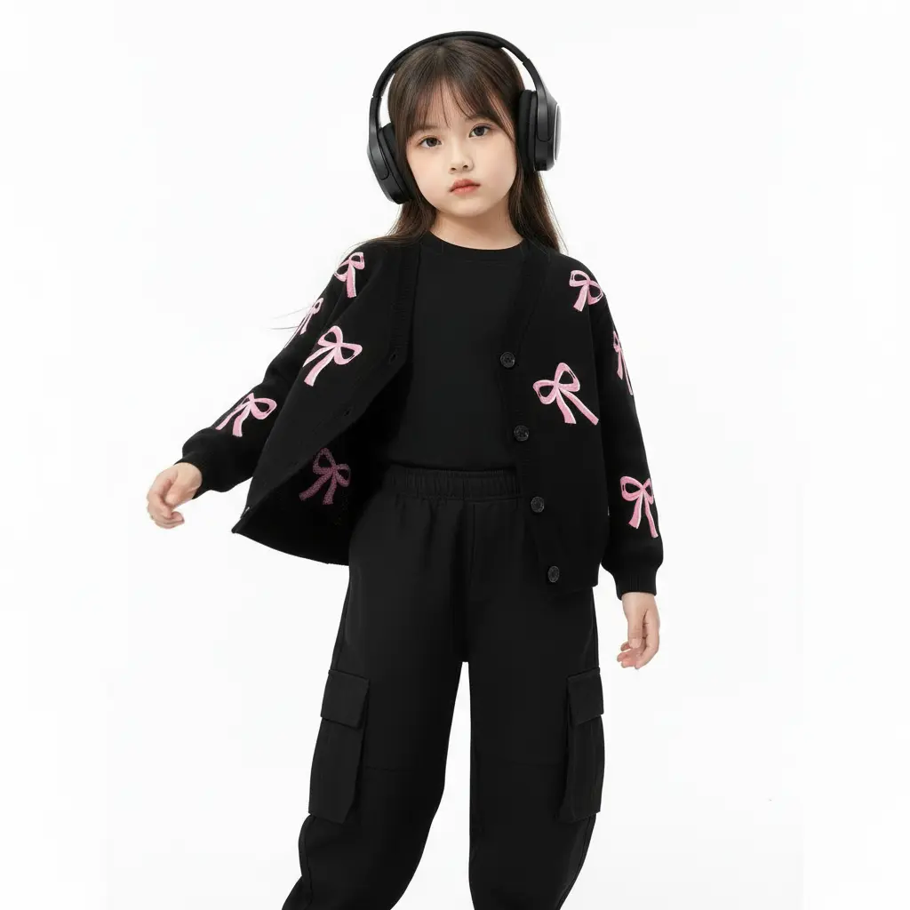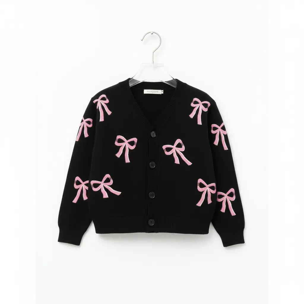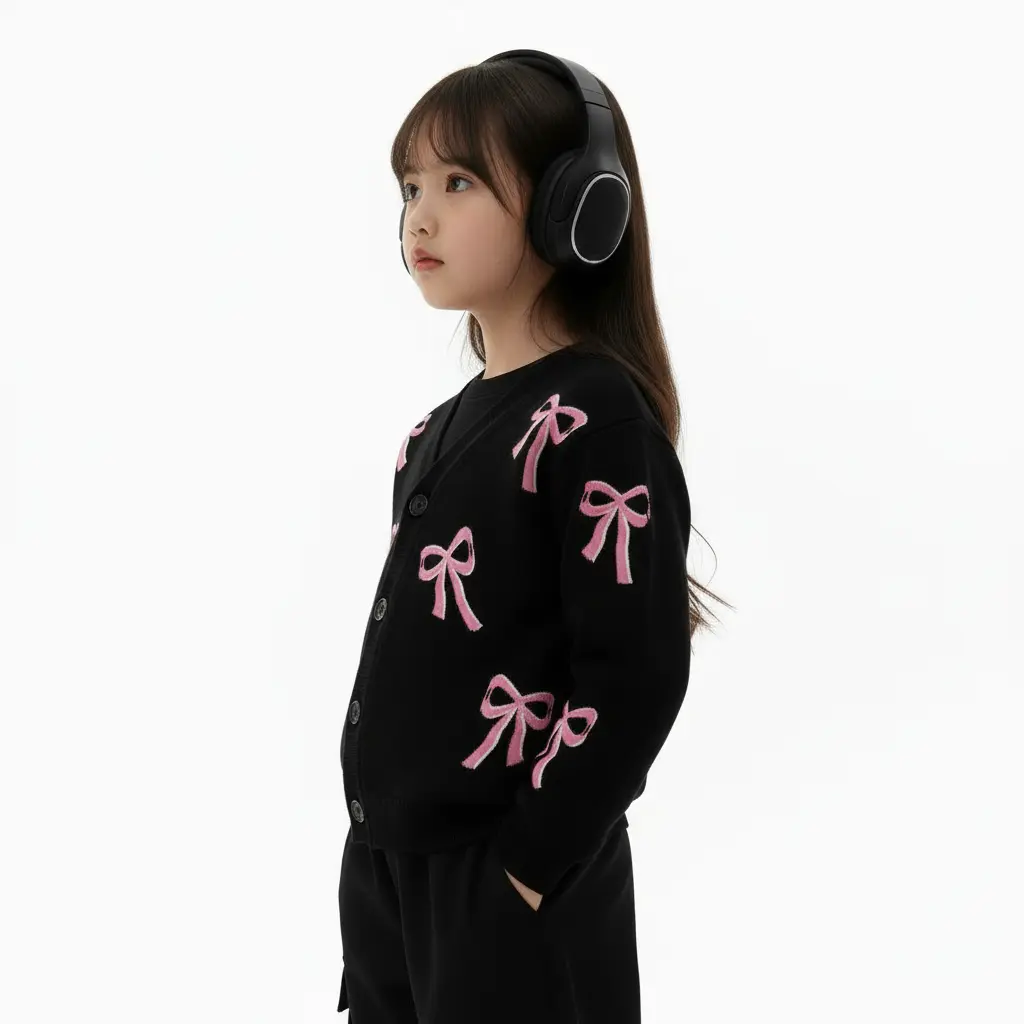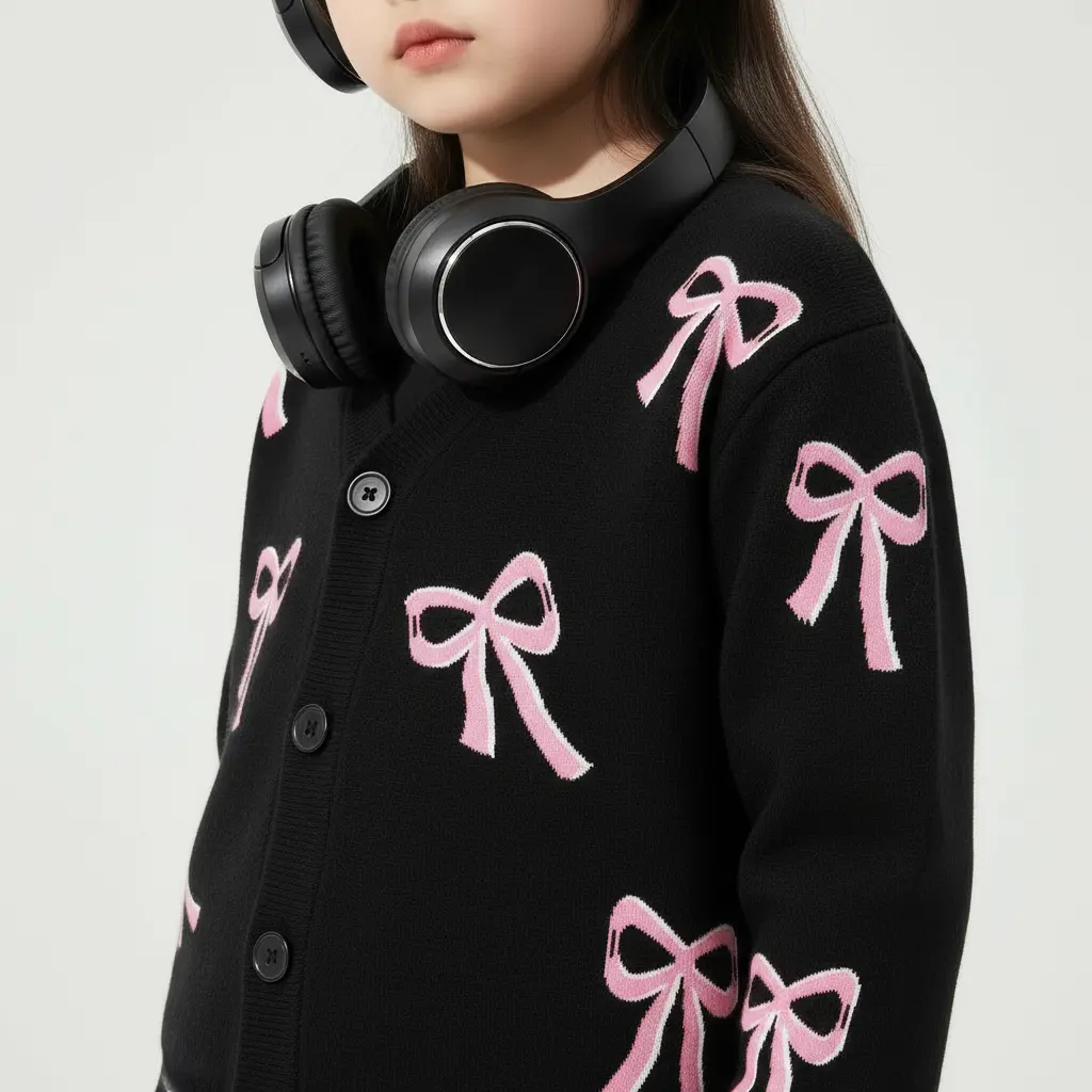 CAIFU Cardigan Pita Hitam Anak Perempuan Cardi Lengan Panjang Atasan Y2K Usia 3-12 Tahun Bahan Lembut Halus Nyaman Adem Variasi Warna Pastel Cantik Fashion