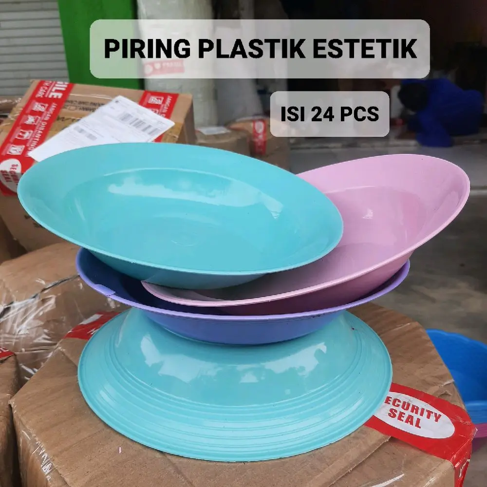 5. Paket hemat 24 pcs piring plastik makan ukuran 9 estetik murah