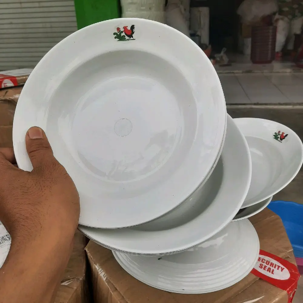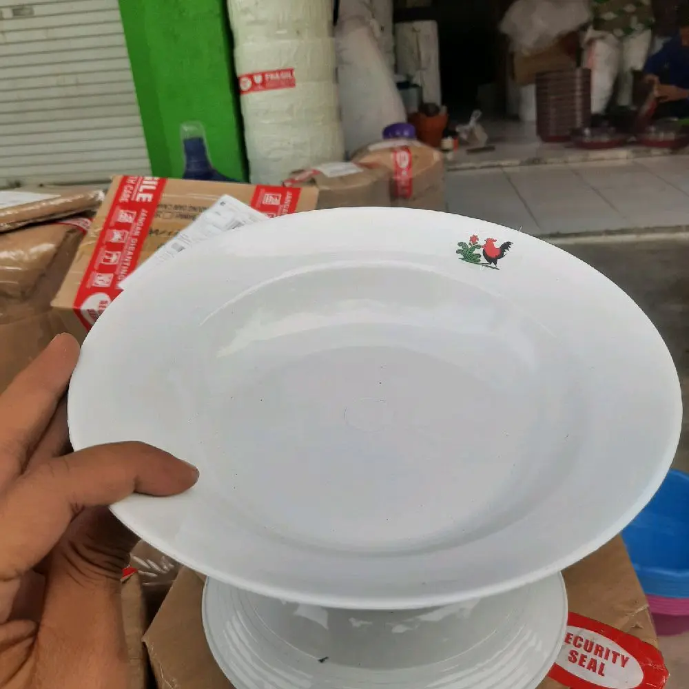 5. Paket hemat 24 pcs piring plastik ayam jago putih ukuran 9 estetik murah Kitchenware