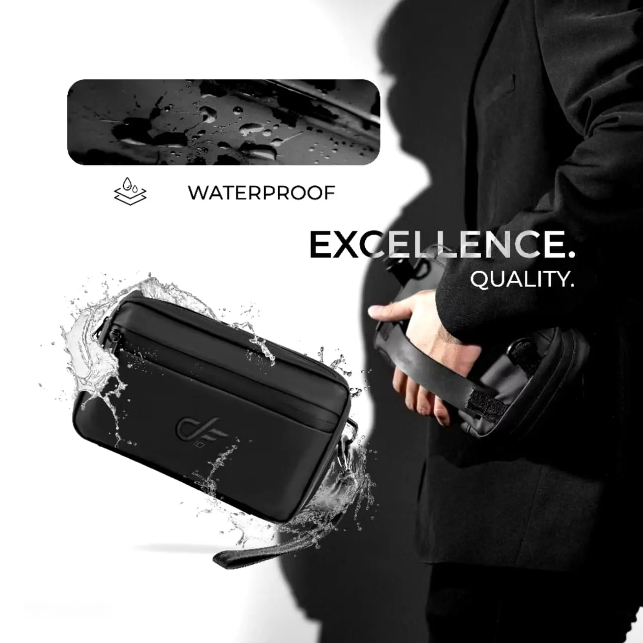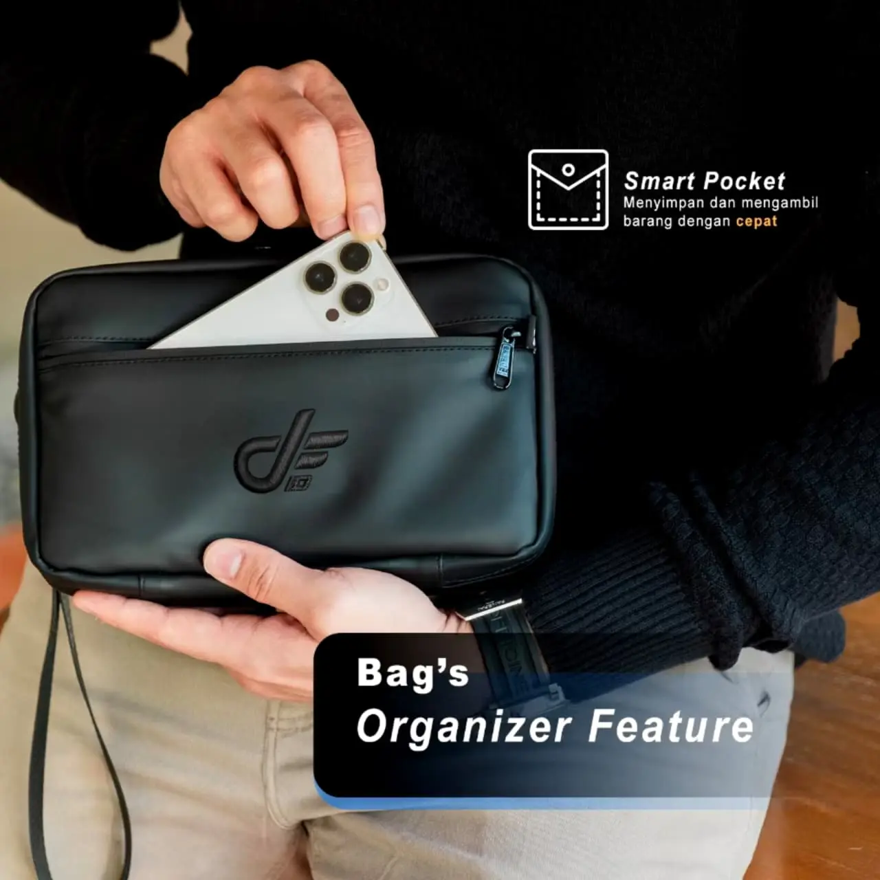 Bahan utama PU Premium Waterproof yang digunakan membuat tas ini tahan air dan dapat melindungi barang-barang Anda dari hujan atau kelembaban. Lapisan dalam Satin Nylon Premium memberikan kesan mewah dan melindungi barang-barang Anda.