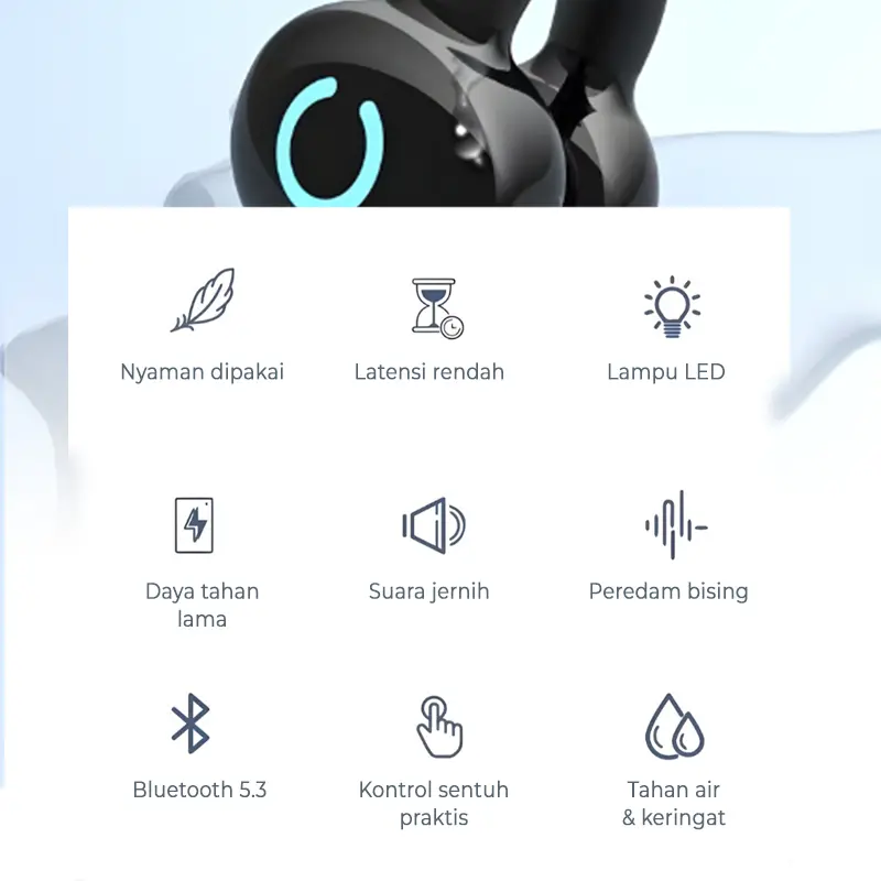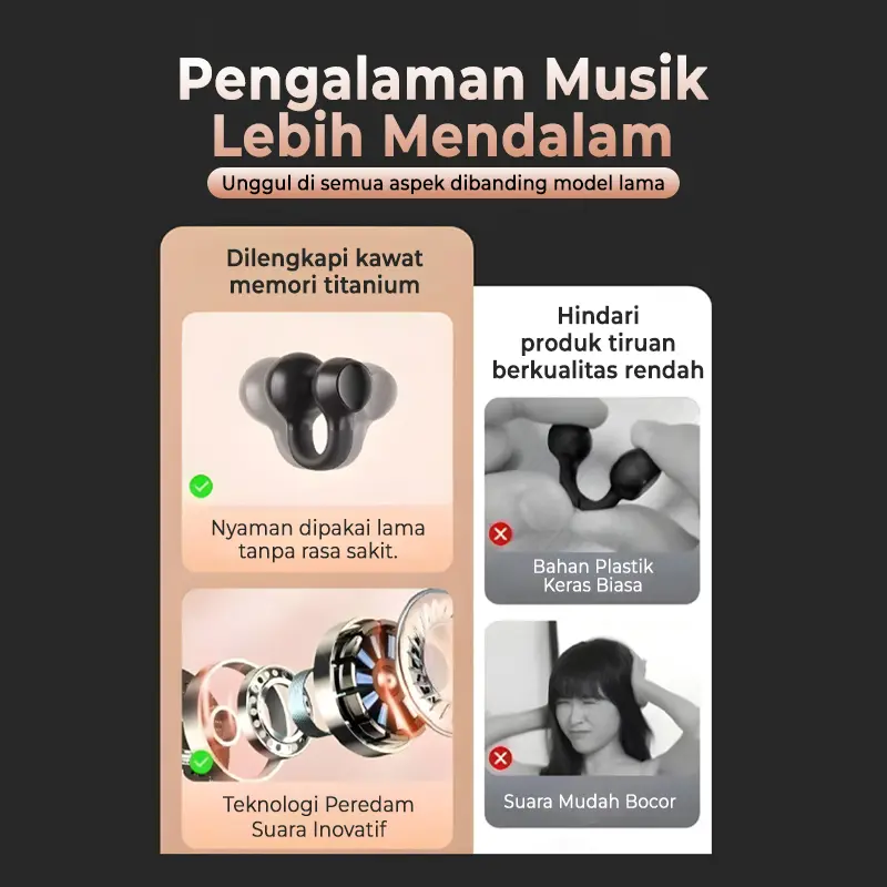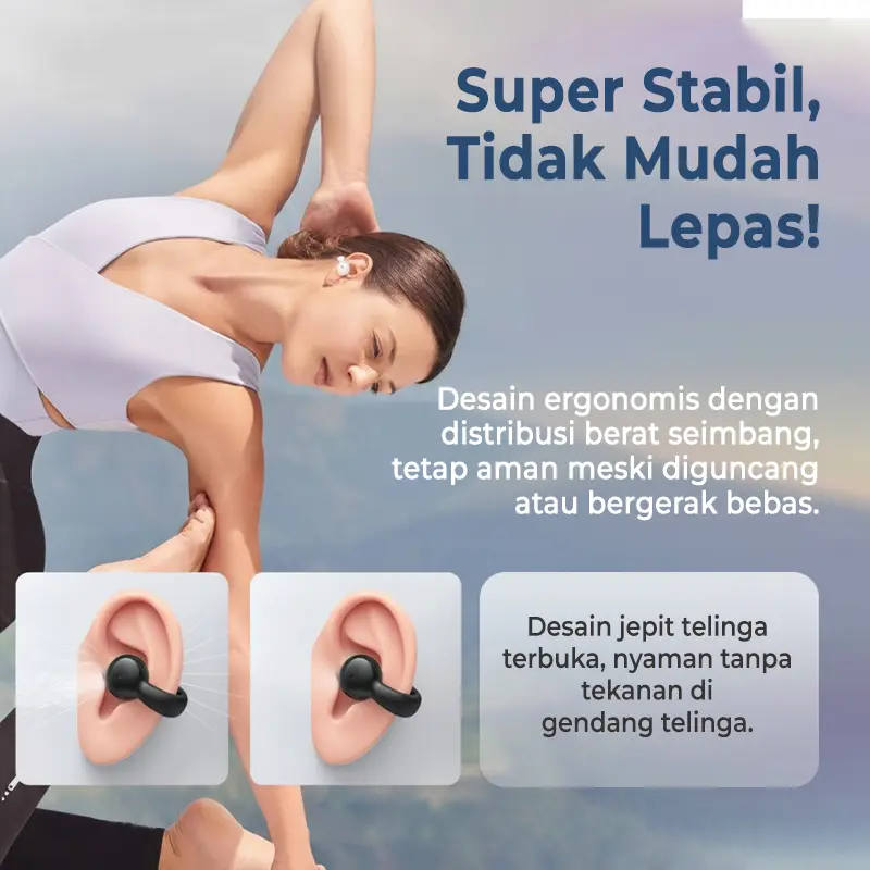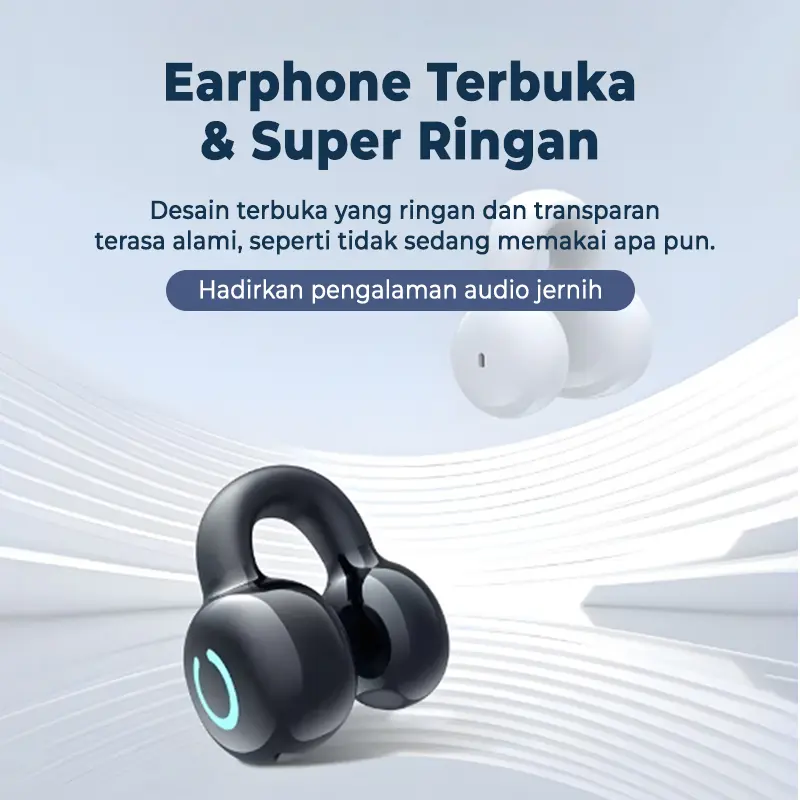 Produk ini adalah open-ear, tidak menutup telinga. Warna produk dapat berbeda sedikit akibat pencahayaan.