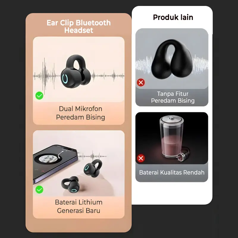 Β·Desain Jepit Telinga: Stabil saat olahraga, tidak mudah jatuh.