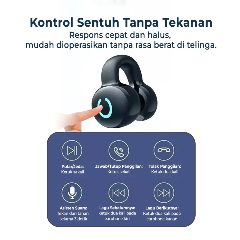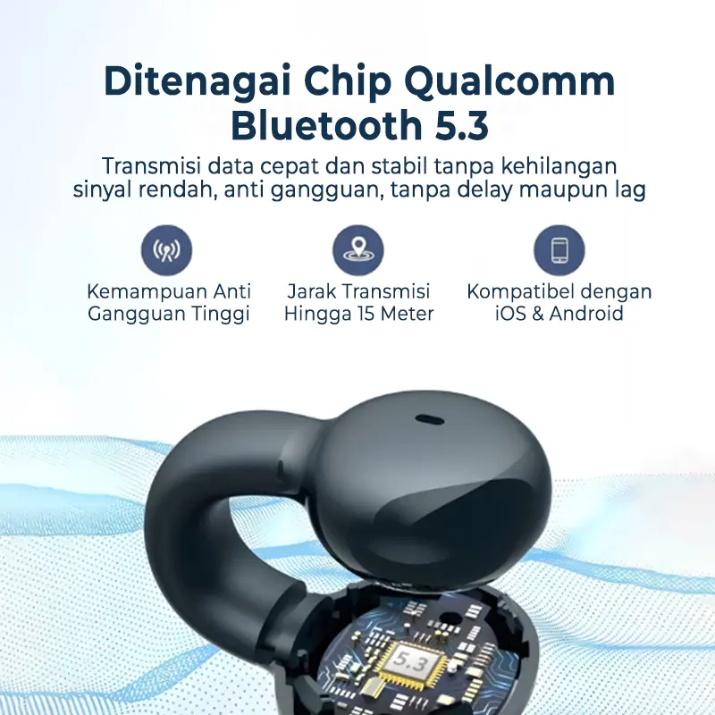 Β·Teknologi Bone Conduction: Tidak masuk ke dalam telinga, lebih nyaman dan higienis.