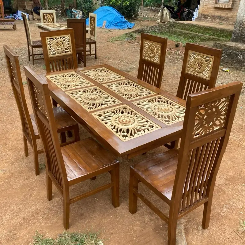 5. Korsi Makan Ukir Tembus Meja Makan Kayu Jati Desain Elegan dengan 6 Kursi Cocok untuk Ruang Makan