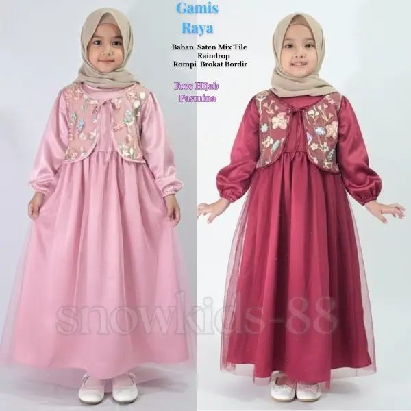 Gamis Anak Perempuan Terbaru Usia 3-10 Tahun ( FREE HIJAB ) Motif Rompi Brokat Bordir Bunga Cantik Full Furing - Panjang Anak Cewek Dress Long Muslim Syari Wanita Baju