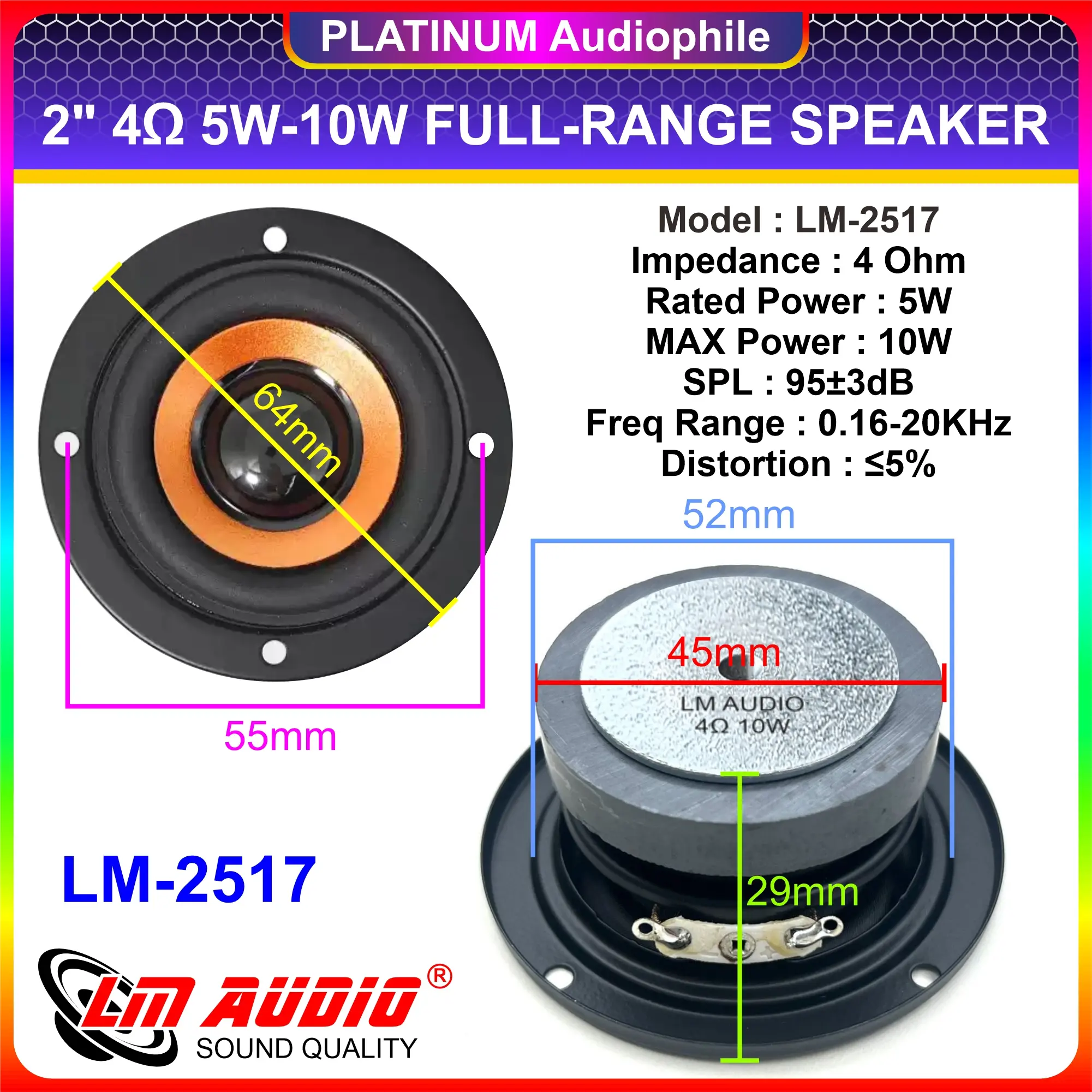 Specification Type : 2.5 inch Full-range Speaker