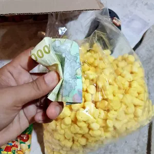Ciki ringan dan gurih yang disukai anak-anak. Setiap pcs berisi snack renyah dengan rasa yang lezat, cocok untuk cemilan harian, jualan eceran, maupun paket hadiah.