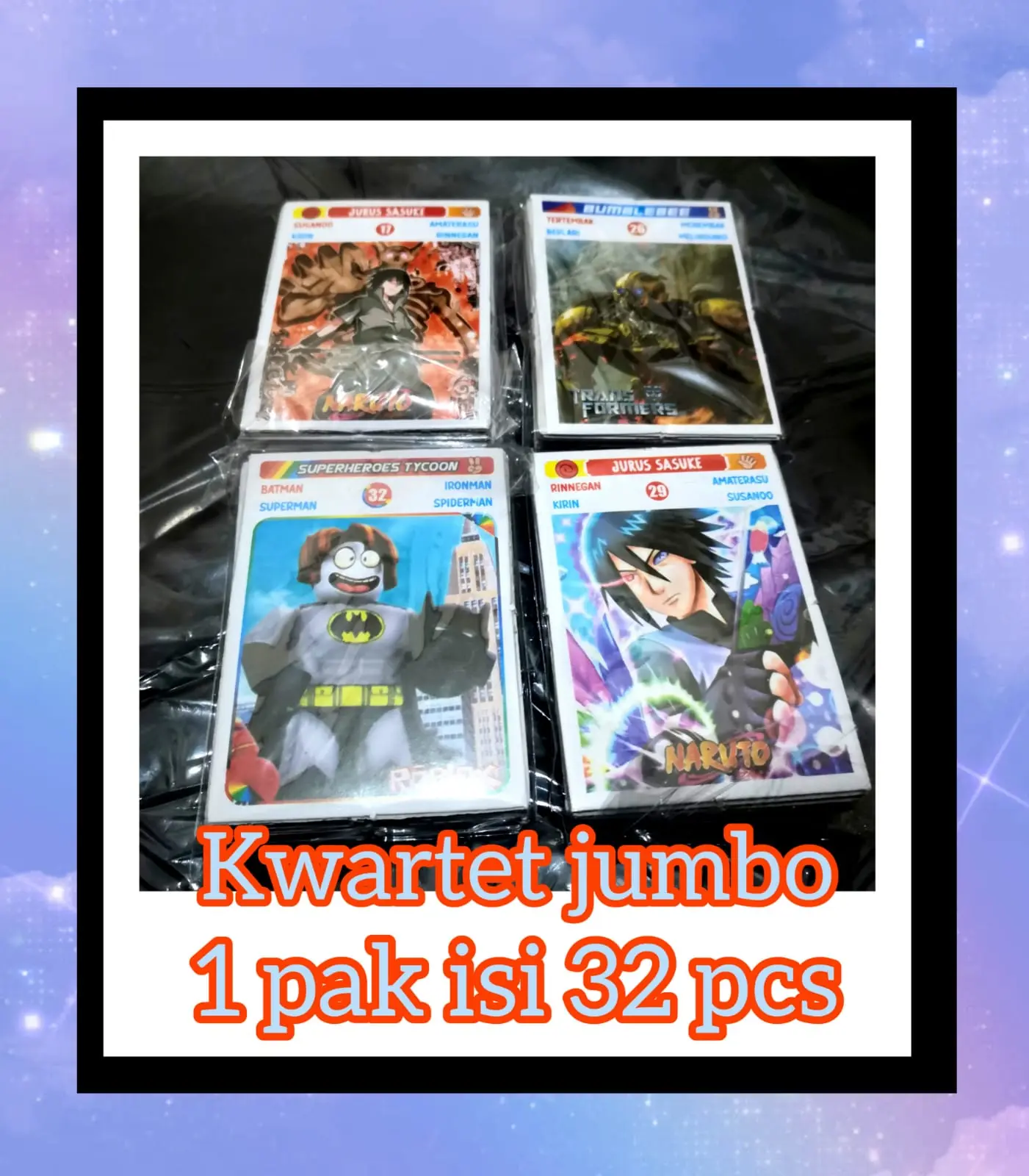 ✨ Mainan Kartu Kwartet Jumbo model aneka kartun, 1 pack isi 32 kartu. Cocok untuk mainan kartu yang seru dan menarik. 🎲