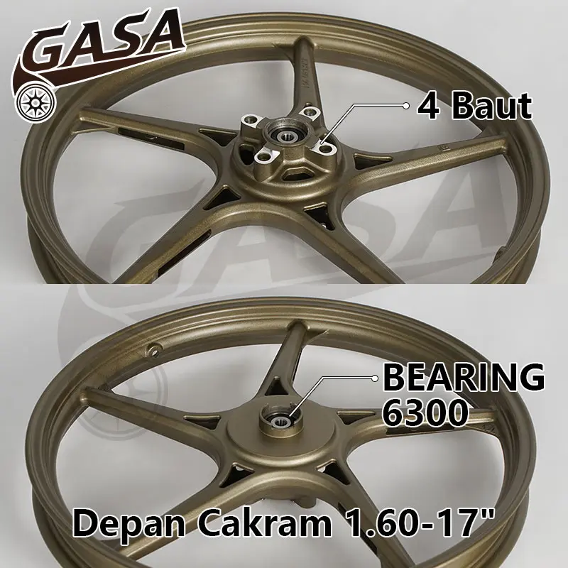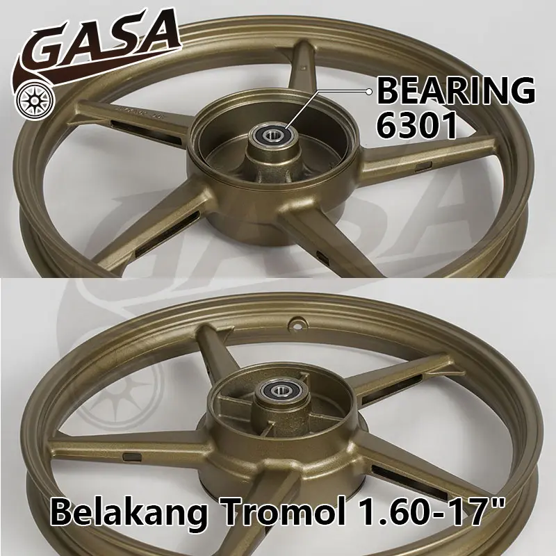 (Lubang 4 Velg Depan Cakram bearing 6300, Velg Belakang Tromol Besar bearing 6301, Pastikan sesuai)