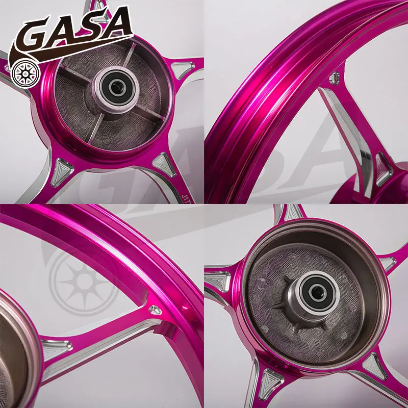 Velg racing dengan detail tajam dan proporsi sempurna hasil proses finishing CNC, membuat tampilan motor tidak hanya mencolok tetapi juga berkualitas tinggi.