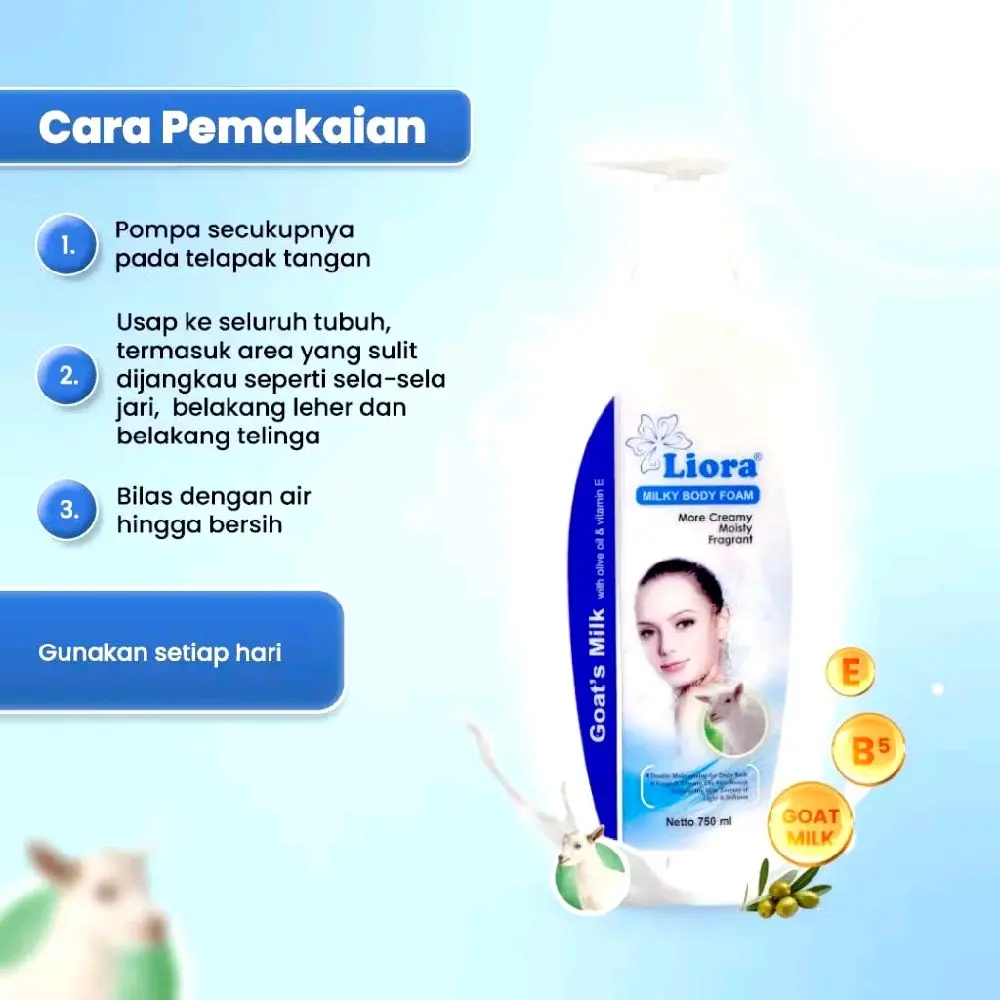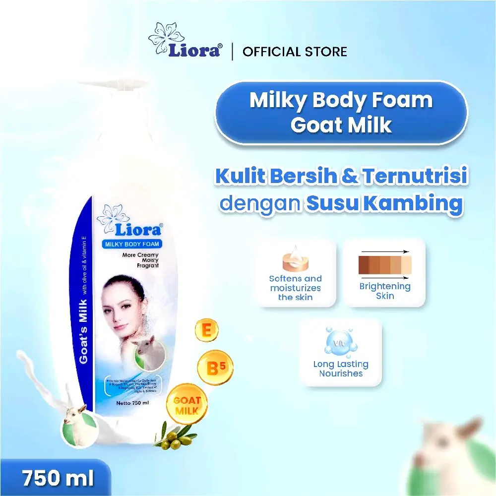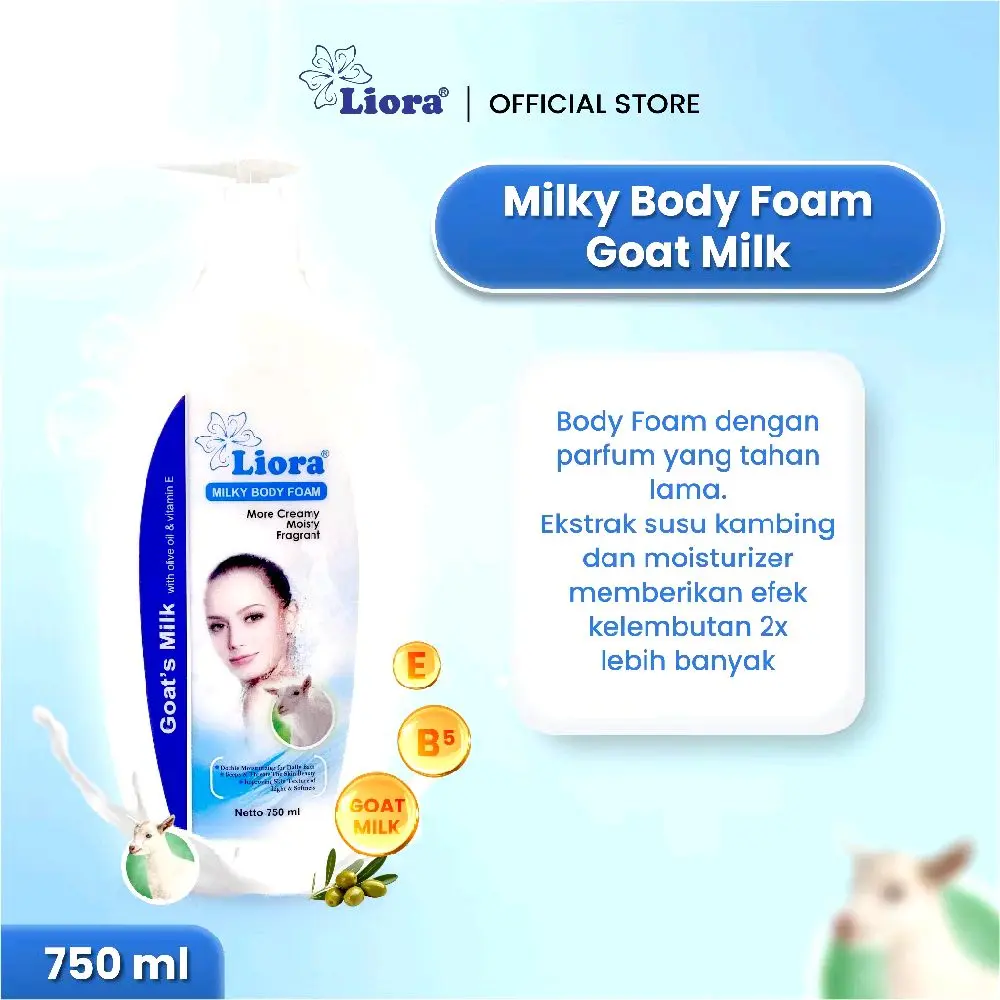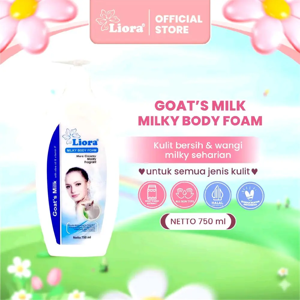 5. Liora Liora Milky Body Foam Goats Milk 750ml Sabun Mandi Lembut Kulit Bersih Wangi Halal untuk Semua Jenis Kulit