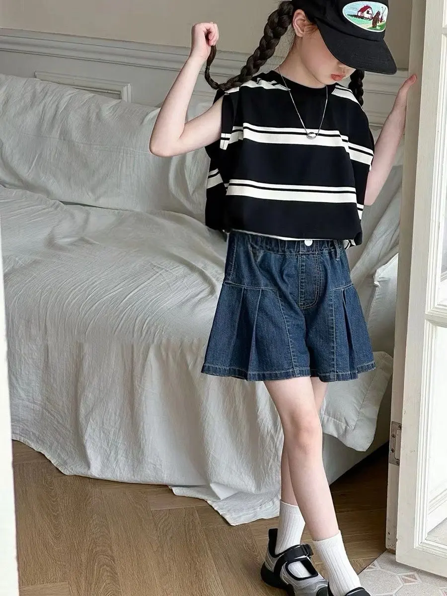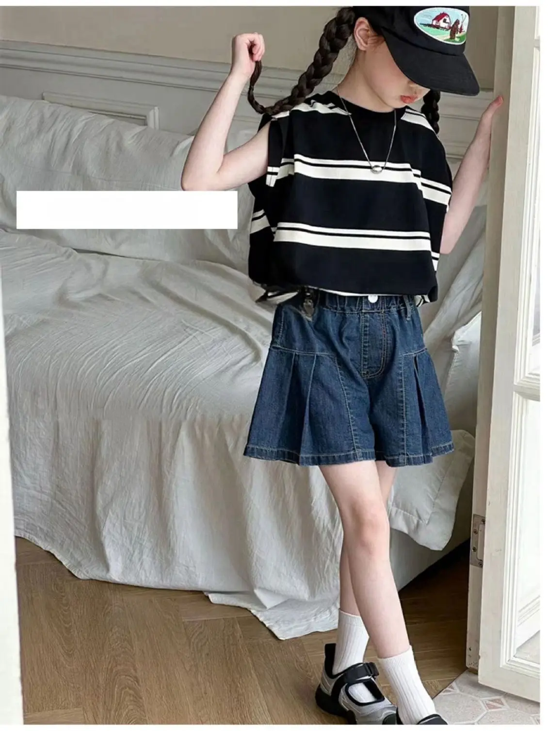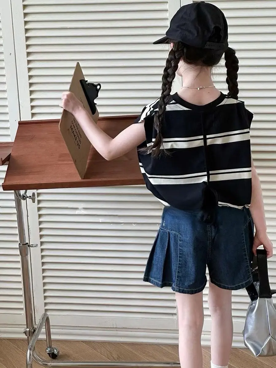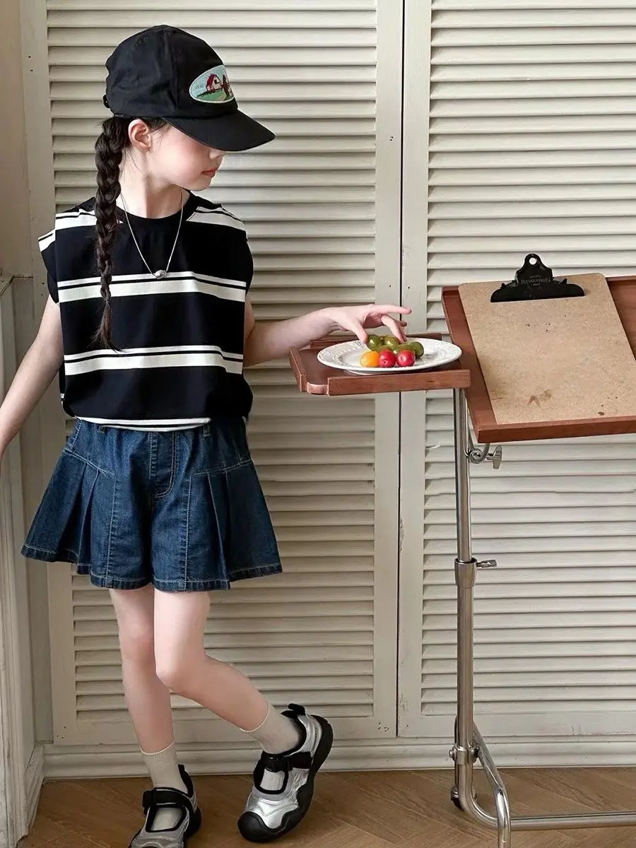 [KIDSFASHIONKOLESI] 3025 Setelan Blakely Blaster With Denim Pleat Skirt Sleeveless Anak Perempuan