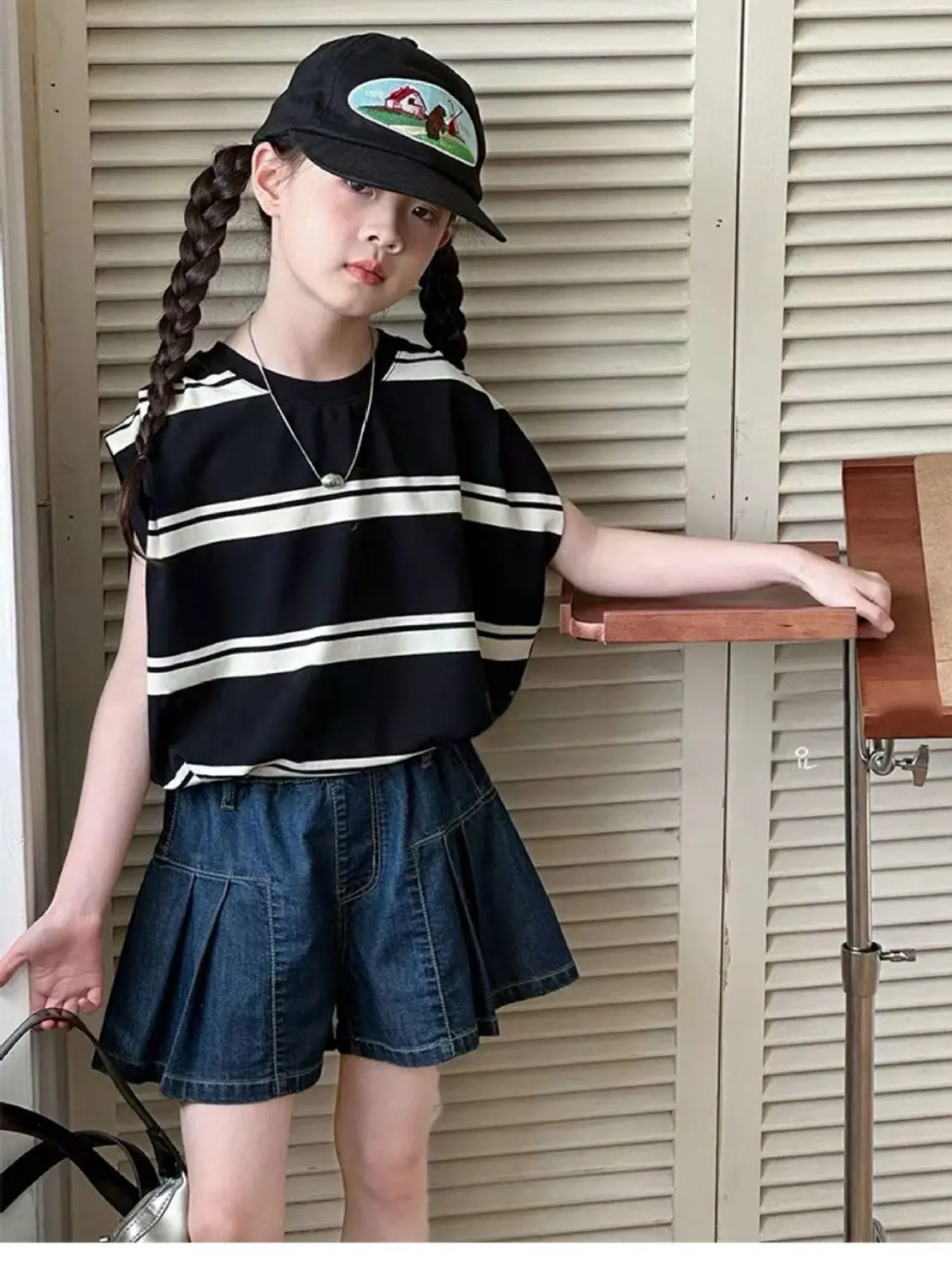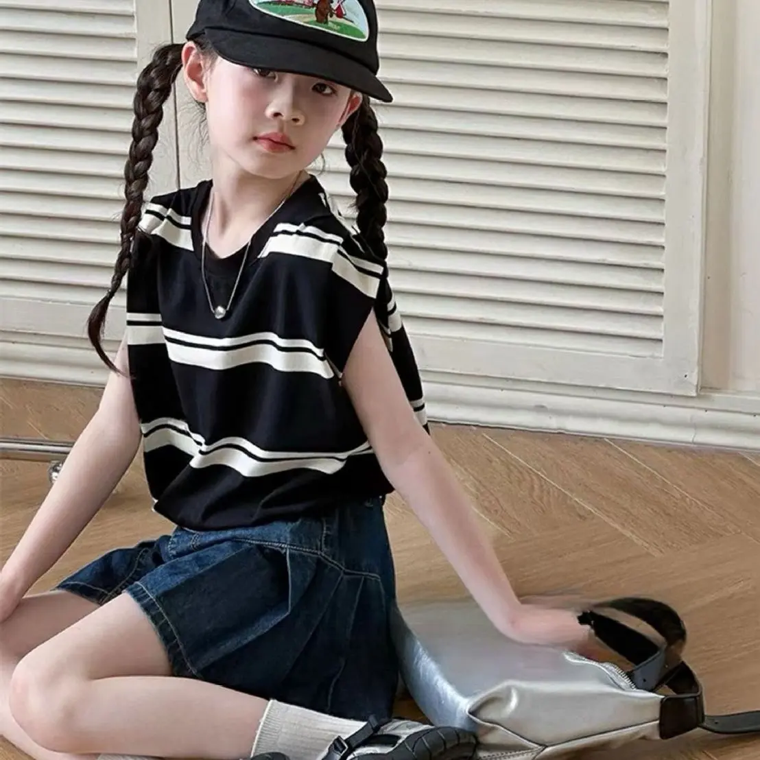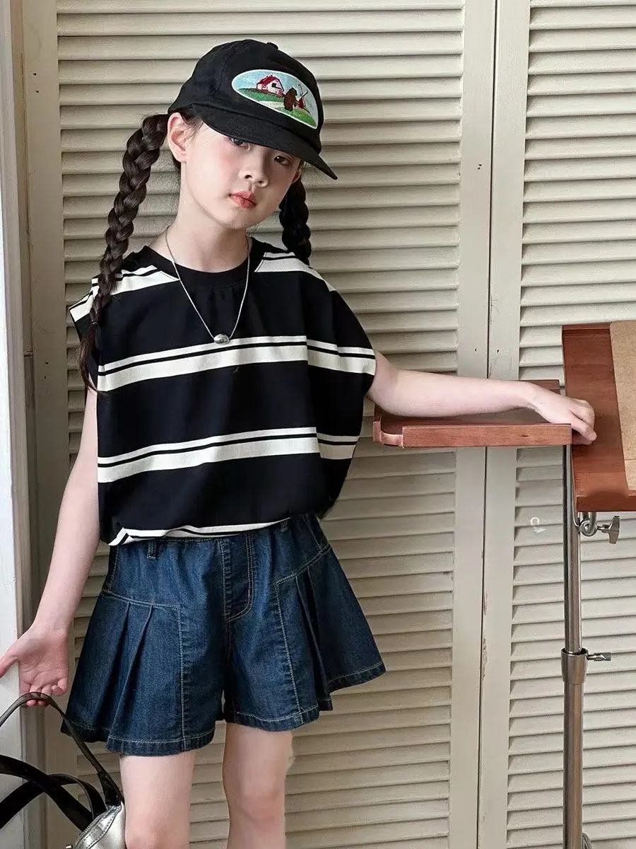 [KIDSFASHIONKOLESI] 3025 Setelan Blakely Blaster With Denim Pleat Skirt Sleeveless Anak Perempuan