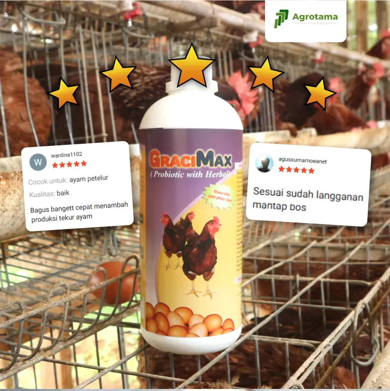 Ingin ayam sehat dan bertelur banyak tanpa biaya operasional tinggi? Gracimax adalah solusinya.
