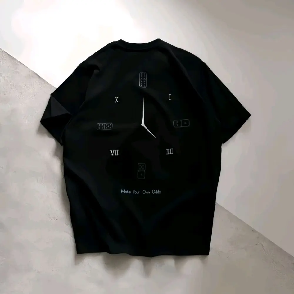 RUCAS “MAKE YOUR OWN ODDS BLACK TEE” adalah pilihan tepat untuk kamu yang ingin tampil simpel, keren, dan penuh makna dalam setiap langkahmu.