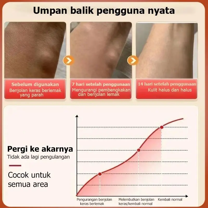 Akhirnya nemu solusi untuk benjolan lipoma di paha! Setelah 10 hari pakai, benjolannya tidak lagi keras, ukurannya juga menyusut banyak, lega banget.