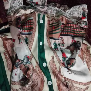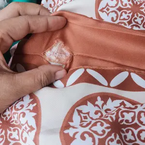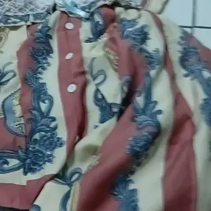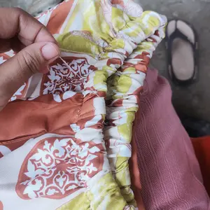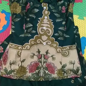 Bahannya biasa aja motif elegan namun untuk jahitan masih agak kurang ya harus dijahit balik soalnya nggak double jadi kalau takutnya dipakai langsung koyak bagian jahitannya
