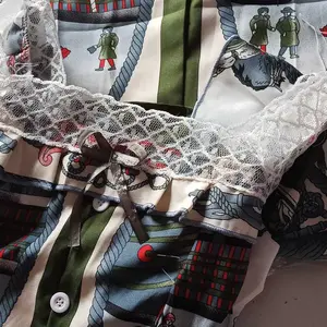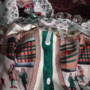 Bahan tipis tp adem hanya benang byk yg keluar tdk rapih.pinggang full karet.posisi kancing di baju tdk ditengah (kancing hanya untuk fariasi saja).bagian celana ada tarik benang
