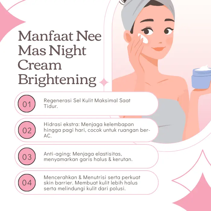 Gunakan Night Cream Brightening skin dari Nee.Mas dan rasakan kulit lebih sehat setiap harinya. #KulitSehatBarengNeeMas