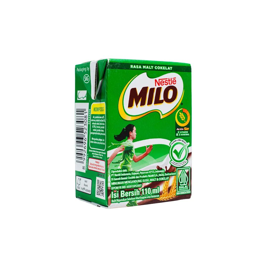 NESTLE MILO ACTIV-GO UHT adalah minuman coklat malt siap minum yang diperkaya dengan kandungan vitamin dan mineral penting. Dengan formula Activ-Go yang unik (Protomalt, Vitamin, dan Mineral), Milo UHT memberikan energi tambahan yang dibutuhkan anak untuk tetap aktif di sekolah maupun saat berolahraga.