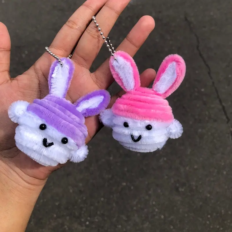 Gantungan Kunci Kawat Bulu karakter kelinci, produk handmade