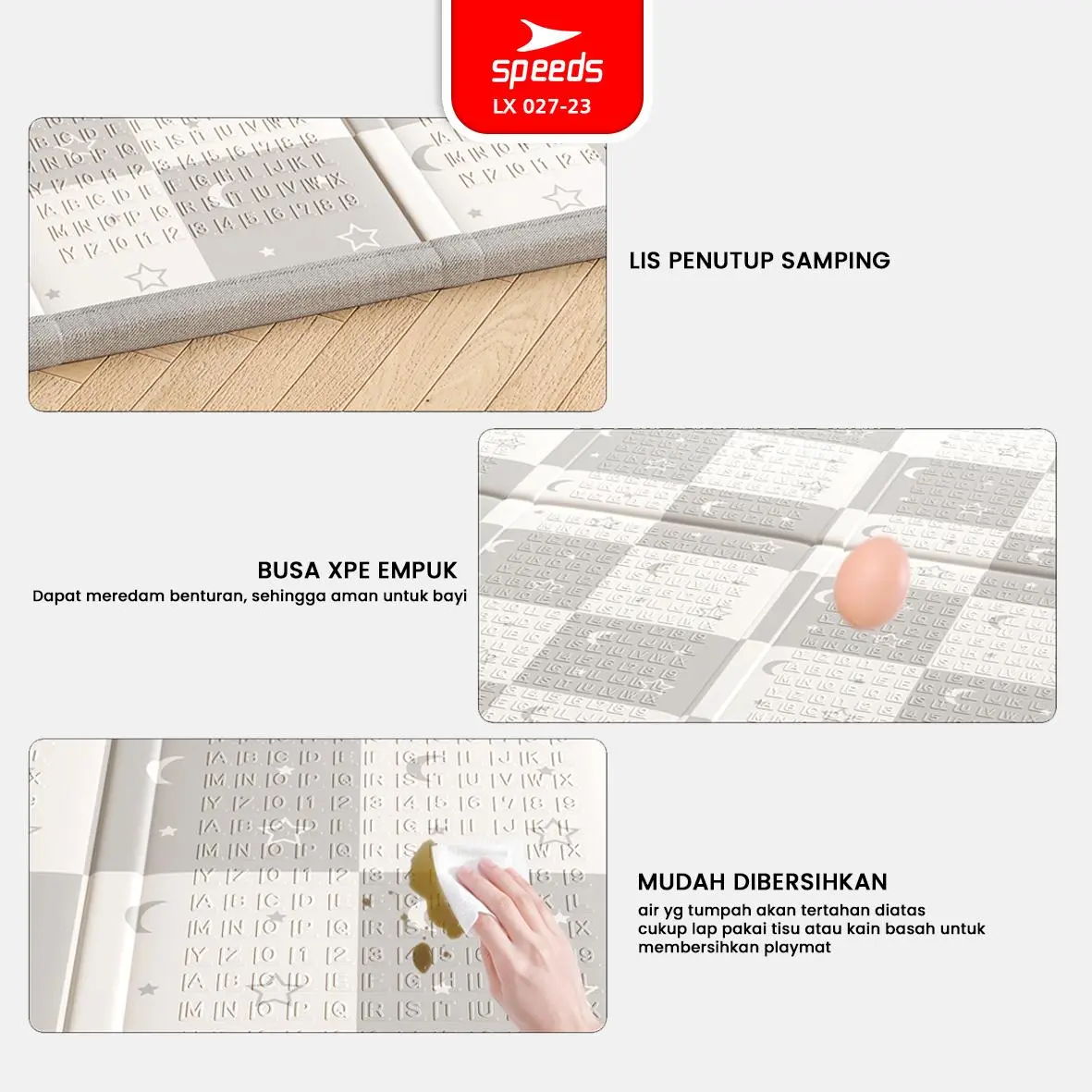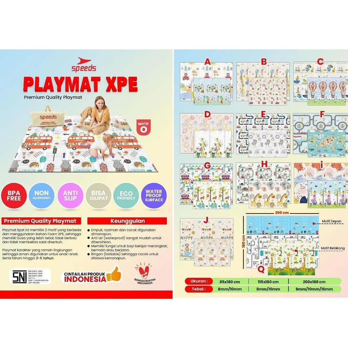 1. Playmat bayi/anak dari bahan XPE yang tahan lama dan aman untuk digunakan, berbeda dengan EPE.