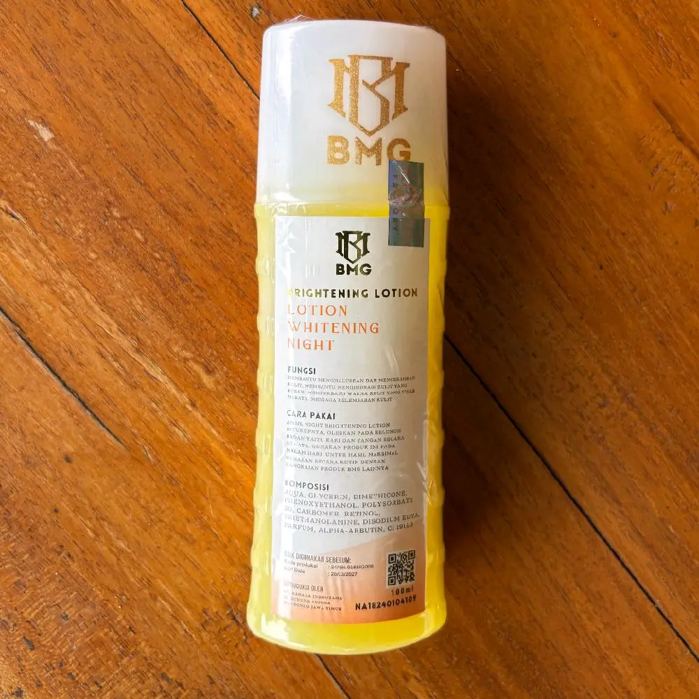 ยทInformasi Lengkap: Produk ini adalah night lotion brightening BMG, isi 100ml, stok ready, dan kadaluwarsa bulan 2027. Segera pesan sekarang! ๐ŸŒŸ