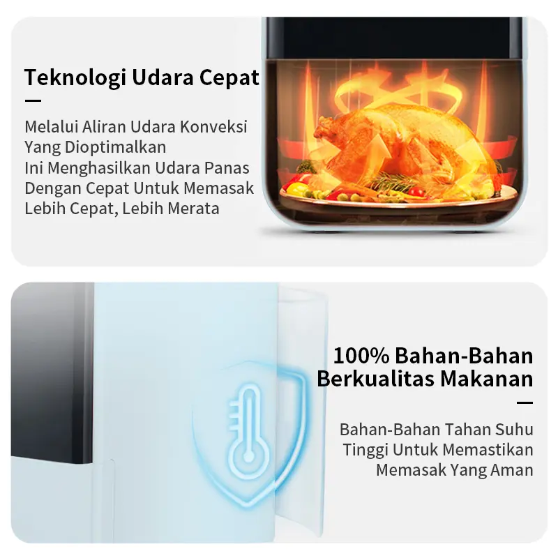 Preset Otomatis (6 fungsi): Fry, Grill, Roast, Dehydrate, Reheat, Keep Warm