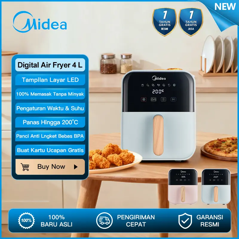 Midea Air Fryer MAD40007ADI adalah solusi inovatif untuk memasak yang sehat dan praktis. Dengan teknologi penggorengan udara yang canggih, alat ini memungkinkan Anda untuk menikmati makanan yang lezat tanpa harus menggunakan minyak berlebih. Daya rendah 650W dan sirkulasi panas 360° memastikan bahwa setiap hidangan dimasak secara merata, memberikan hasil yang crispy dan menggugah selera. Dengan kapasitas 4 liter, Anda dapat memasak porsi besar untuk keluarga, mulai dari ayam utuh hingga camilan seperti kentang goreng dan kue. Desainnya yang ringkas dan modern membuatnya cocok untuk dapur kecil, menjadikannya pilihan ideal bagi mereka yang ingin memasak dengan cara yang lebih sehat tanpa mengorbankan rasa.