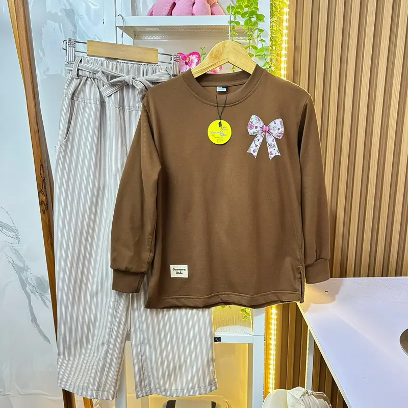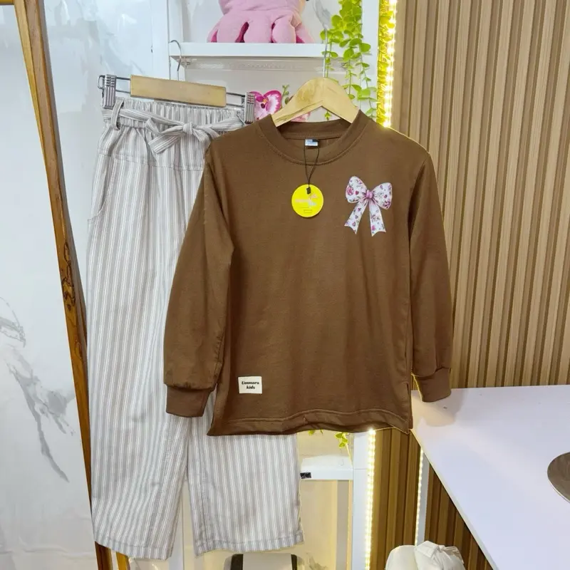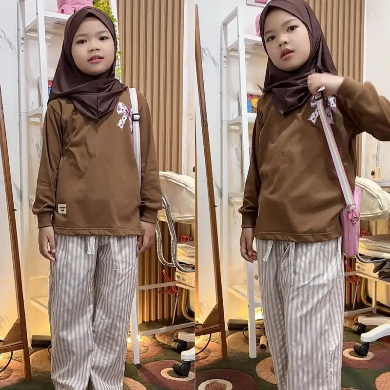 Setelan Celana Salur Coklat Celia Ummarakids adalah pilihan yang tepat untuk anak-anak. Bahan cotton 100% dan desain celana salur coklat membuatnya nyaman dan menarik. Cocok untuk berbagai aktivitas sehari-hari.
