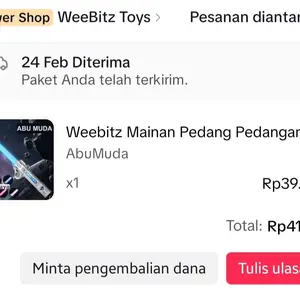 paket dtg anak lgsg heppy.pedang sesuai wrn... menyala dgn sempurna๐.tp batrenya beli sendiri y.smg sll sukses