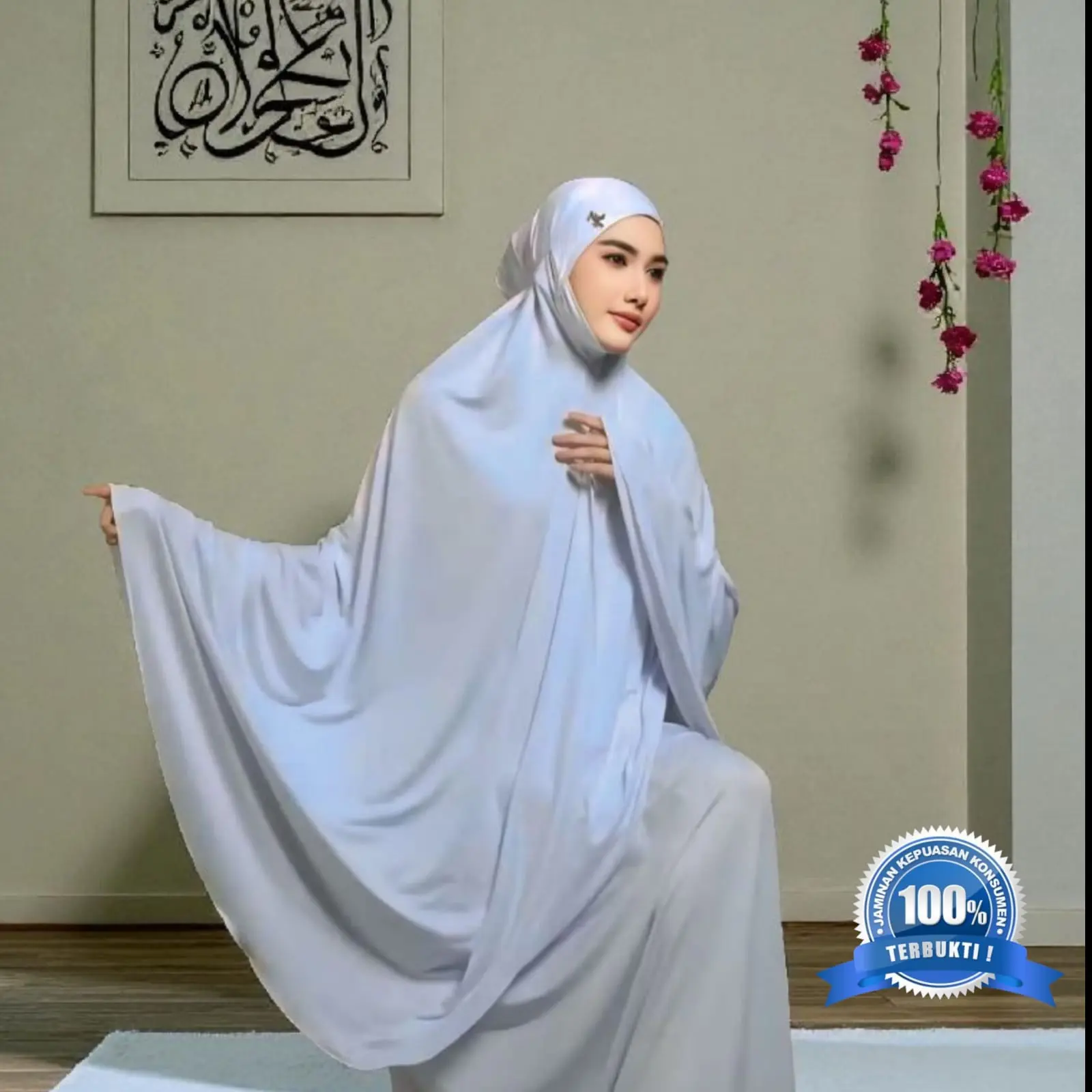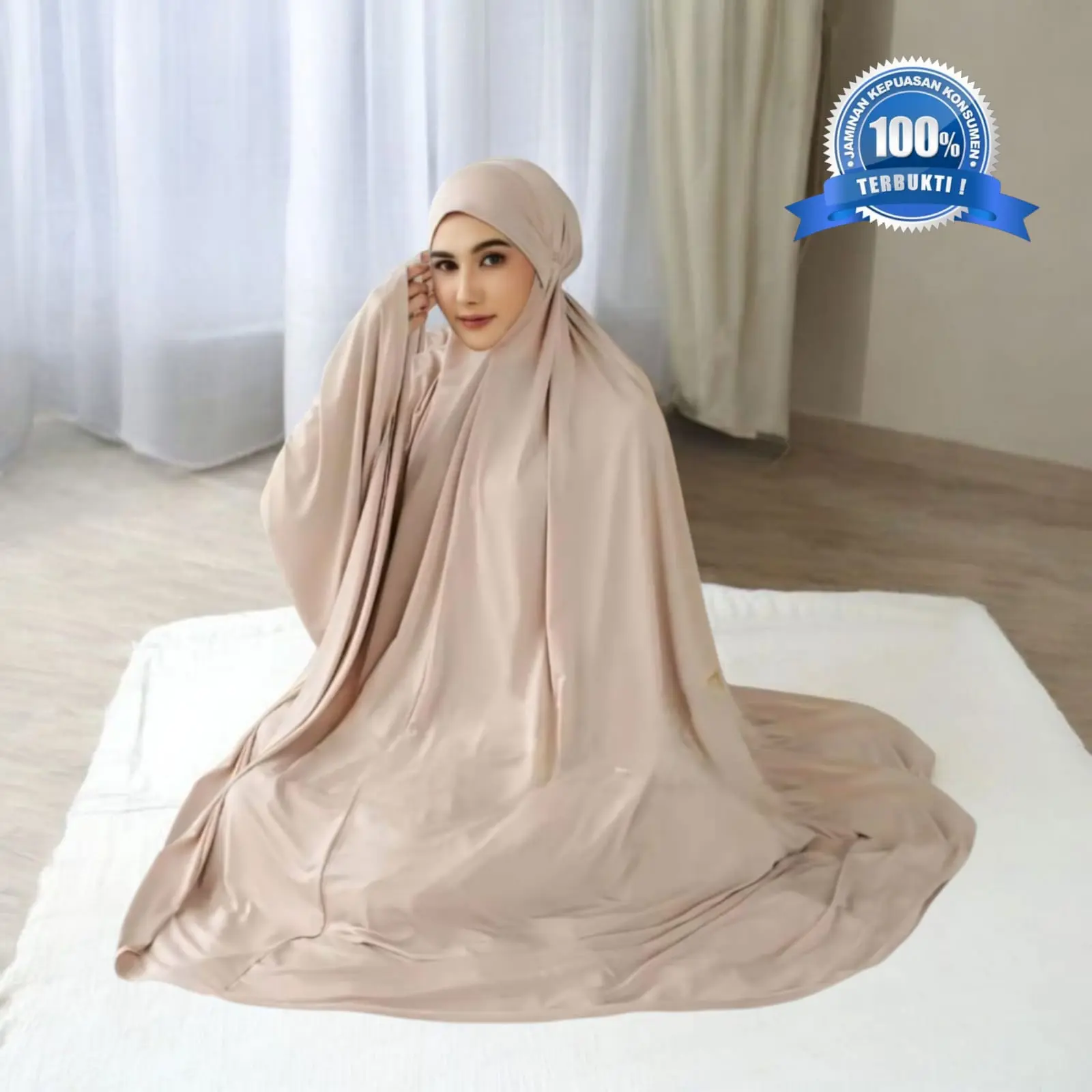 mukena berbahan jersey premium yg sangat nyaman untuk sholat banyak -roka'at,
